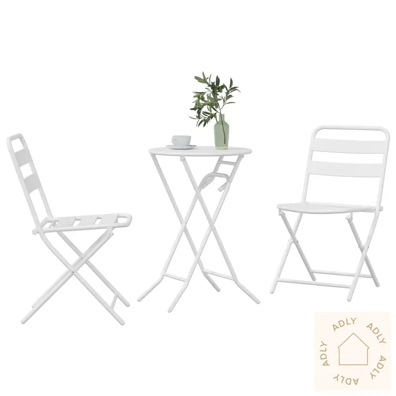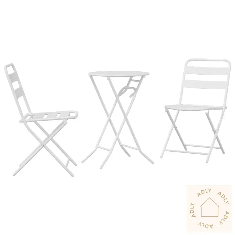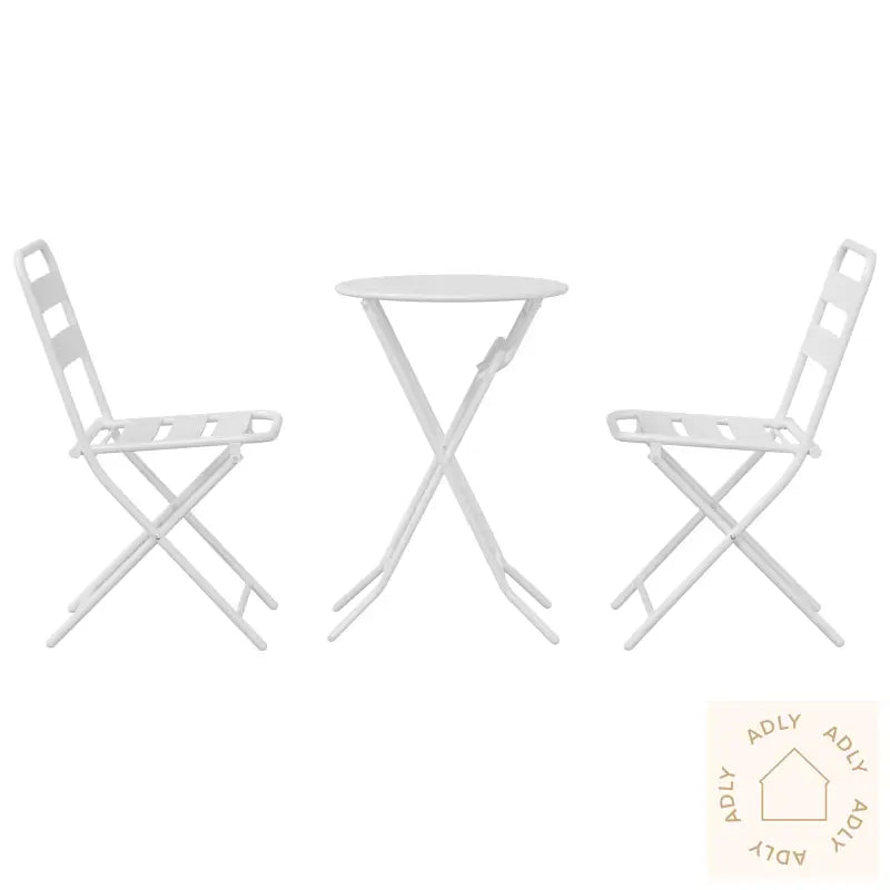 Dette 3-delte sammenleggbare bistro-settet er det ideelle valget for deg som ønsker stilige og funksjonelle hagemøbler til små uteplasser som balkonger, solrom eller terrasser. Den elegante, moderne hvite finishen gir et friskt uttrykk som passer inn i de fleste miljøer, samtidig som det kombinerer praktisk bruk med god design – perfekt ikke bare for utemåltider, men også for en avslappende kaffestund ute.