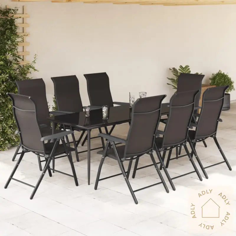 For å holde utemøblene dine fine over flere sesonger anbefaler vi å bruke et vanntett møbeltrekk. Et trekk beskytter mot både regn og UV-stråler, slik at dine møbler varer lenger.Farge: svart kaffeMaterialer: PE-rotting (polyrotting), pulverlakkert stålramme for ekstra stabilitetMål: 69 x 54,5 x 111 cm (L x B x H)Høyde sete fra bakken: 44 cmHøyde armlene fra bakken: 66 cmMål brettet : 89 x 59,5 x 16 cm (L x B x H)Høydejusterbar i 6 posisjoner: 111 cm, 108 cm, 103 cm, 96 cm, 87 cm, 72 cmMaksimal lastekapasitet per sete: 110 kgLeveransen inneholder:8 x hagestoler