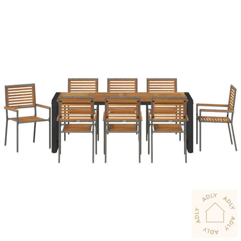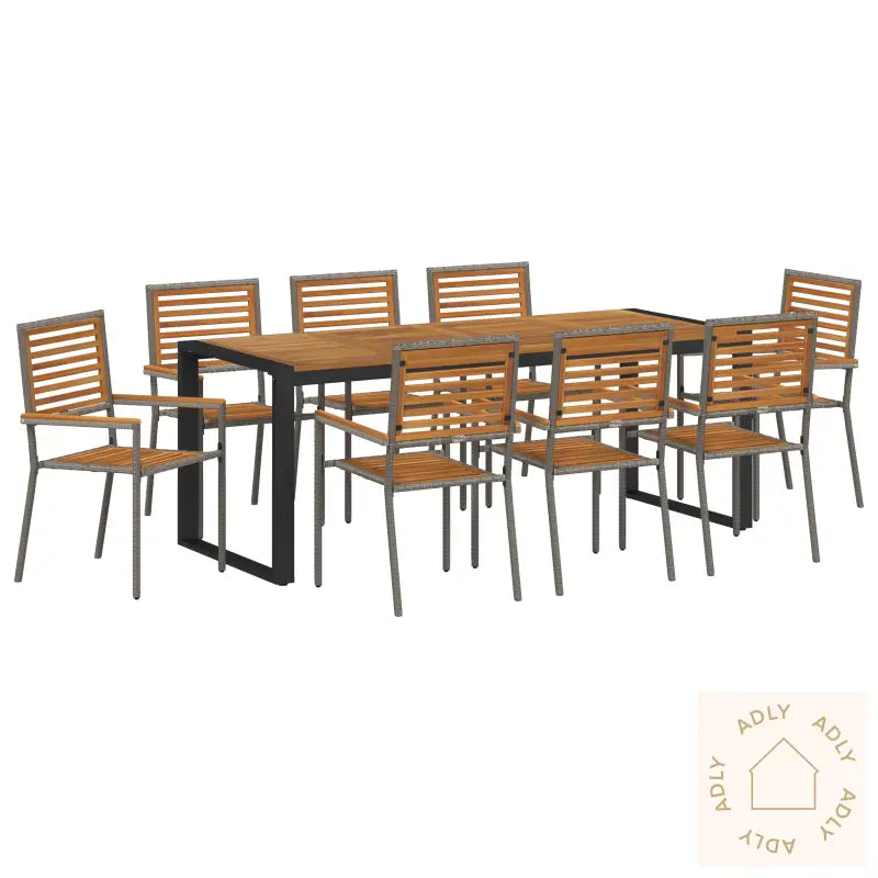 Dette Hagemøblet Set er et ypperlig valg for deg som vil ha både komfort og stil på uteplassen. Her får du god plass til åtte personer, slik at hele familien eller vennegjengen kan nyte lange måltider sammen utendørs – enten det er på terrassen, i hagen eller på en romslig balkong. Møblene kombinerer solid grått metall med vakre naturplanker av tre, noe som gir et moderne og tidløst uttrykk som passer til de fleste hjem og gir uteområdet ditt en fresh look. Enten du ser etter en robust løsning blant hagemøbler eller generelt behagelige møbler til hjemmet, treffer dette settet blink.