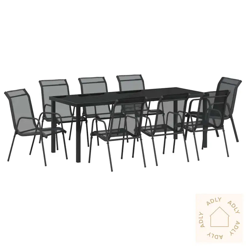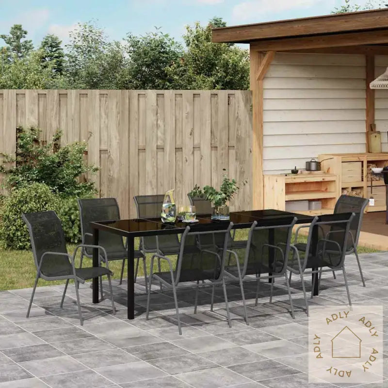 Med en moderne svart og antrasittfinish gir disse stablebare utestolene et eksklusivt og tidløst uttrykk, samtidig som de er utformet for å tåle norsk vær gjennom hele sesongen. Hver stol har romslig setedybde på 66 cm, og den stabile konstruksjonen i metallstål sikrer både lang levetid og minimalt vedlikehold. Det pulverlakkerte belegget beskytter metallet mot rust og slitasje, så du kan stole på at stolene holder seg fine lenge.