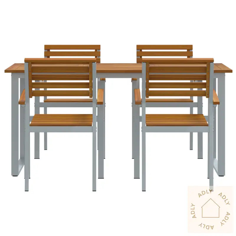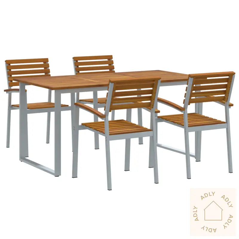Dette 5-delte hagemøbelsettet består av et robust akaciabord sammen med slitesterke metallstoler – et utmerket valg for deg som vil gjøre uteområdet ekstra innbydende. Den klassiske kombinasjonen av naturlig tre og solid metall gir et stilfullt preg, enten du dekker til en hyggelig middag på balkongen eller inviterer venner på terrassen. Med dette settet får du praktiske og dekorative utendørsmøbler som løfter utemiljøet ditt, perfekt når du ønsker å sette et personlig preg på uterommet med moderne møbler til hjemmet.