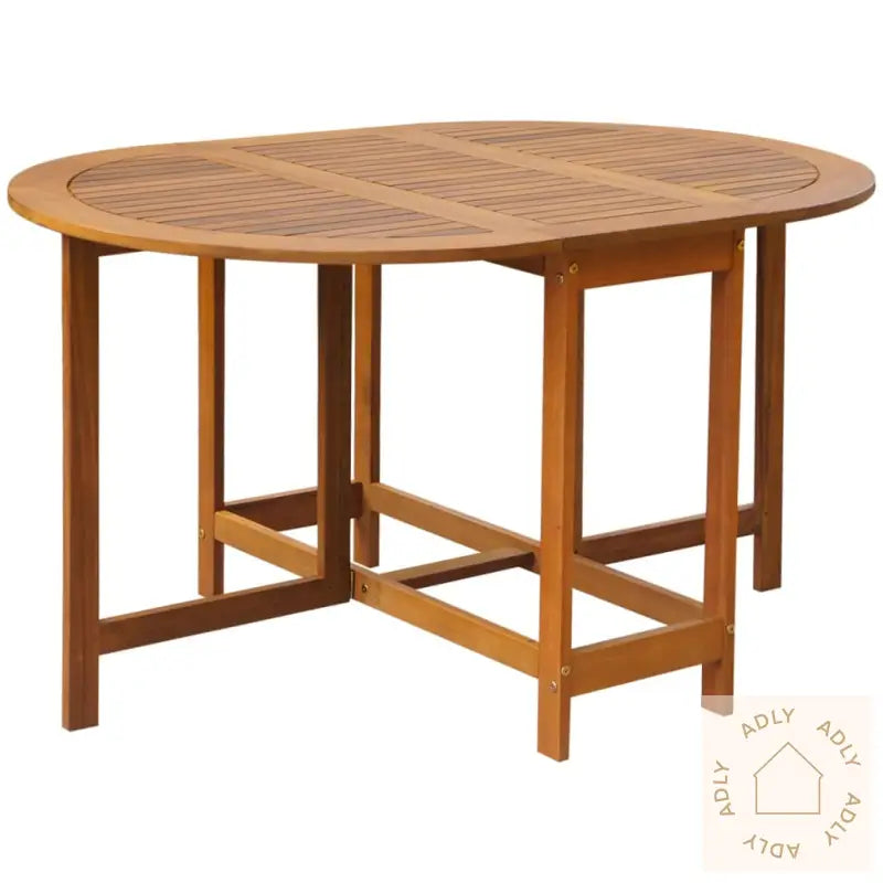 Materiale: akasietre med naturlig oljebehandlingBordstørrelse (når utvidet): 130 x 90 x 72 cm (L x B x H)Bordstørrelse (brettet sammen): 150 x 59 x 75 cm (L x B x H)Mål stol: 47 x 50 x 75 cm (B x D x H)Bredde sete: 39 cmDybde sete: 36 cmHøyde sete fra bakken: 43 cmStolene kan enkelt lagres under bordetLeveransen inkluderer 1 bord og 4 stoler