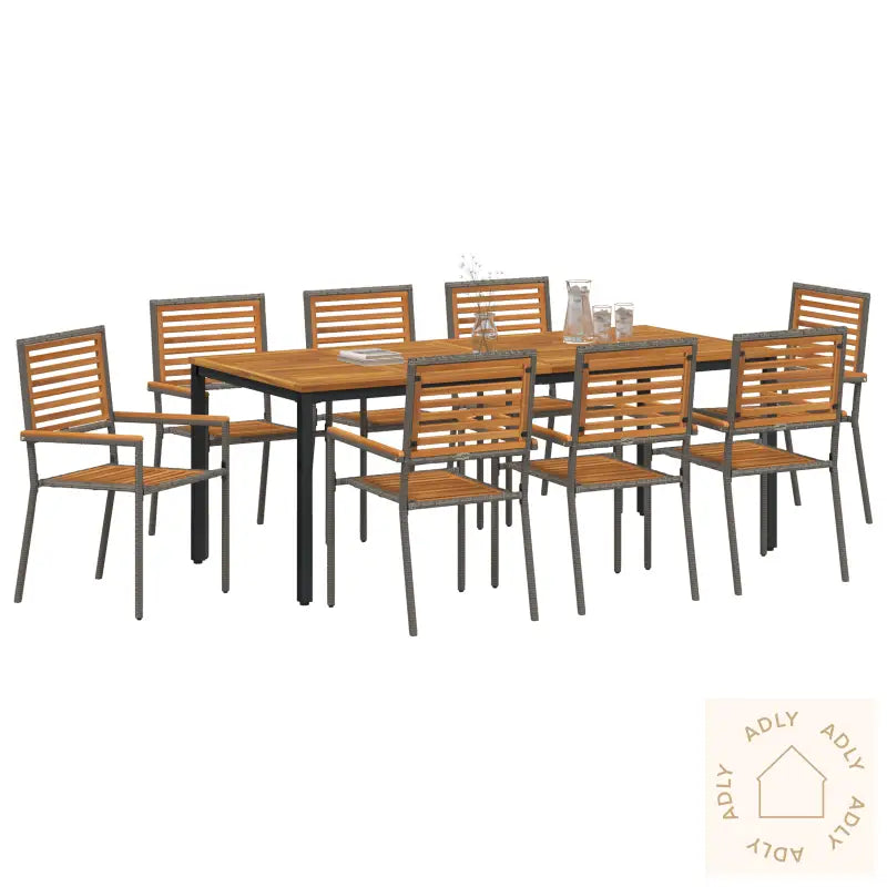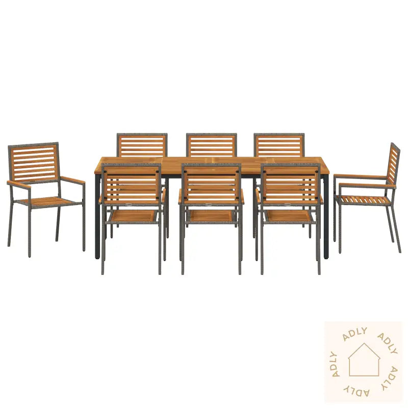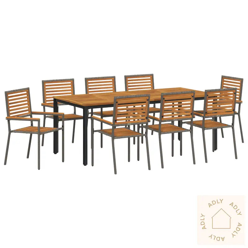 Dette store hagemøbelsettet kombinerer stil og funksjonalitet, så du kan nyte utendørs måltider i hagen eller på terrassen med et preg av luksus. Med sitt moderne design i akasietre og grå syntetisk rotting gir disse utendørsmøblene uterommet et løft og sikrer både komfort og holdbarhet.