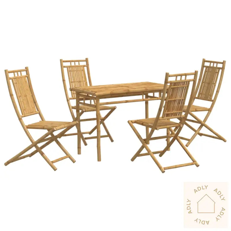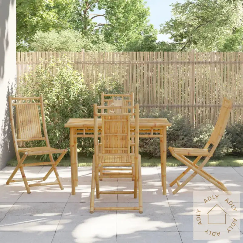 For å holde utemøblene dine flotte år etter år anbefaler vi å bruke et vanntett trekk når de ikke er i bruk.Hagebord:Materiale: BambusMål: 110 x 55 x 75 cm (L x B x H)Sammenleggbar hagestol:Materiale: Bambus med naturlig finishMål (hver): 46 x 66 x 99 cm (B x D x H)Høyde sete fra bakken: 43 cmMaksimal lastekapasitet (per sete): 130 kgPute inkludert: neiMontering kreves: jaLeveransen inneholder:1 x hagebord4 x sammenleggbare hagestolerMed dette settet får du hagemøbler som kombinerer kvalitet og stil på en naturlig måte. De passer perfekt til deg som er på jakt etter møbler til hjemmet som gir uterommet det lille ekstra, samtidig som de tar liten plass når de ikke brukes. Gjør hagen klar for sommerens hyggelige stunder med praktiske og slitesterke hagemøbler!