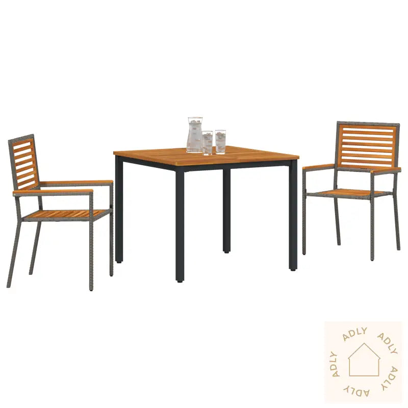 Dette hagemøbelsettet gir både stil og komfort til uterommet ditt. Det er ideelt for små utearealer som balkonger eller terrasser, og gir en elegant oppgradering til utemiljøet med sitt delikate grå polyrotting og naturlige treverk – et perfekt valg for deg som setter pris på moderne hagemøbler eller ønsker møbler til hjemmet som kan brukes utendørs.