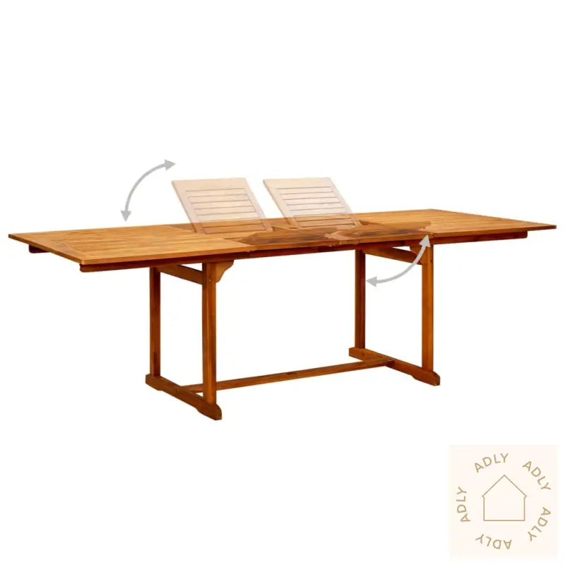 - Premium materiale: Dette spisestuesettet til hage er laget av heltre akasie, som er et tropisk løvtre kjent for høy slitestyrke, naturlig værbestandighet, og imponerende holdbarhet. Overflaten er oljebehandlet, noe som gir ekstra beskyttelse mot fukt og gjør det veldig enkelt å holde pent – en rask tørk med en fuktig klut er alt som trengs.