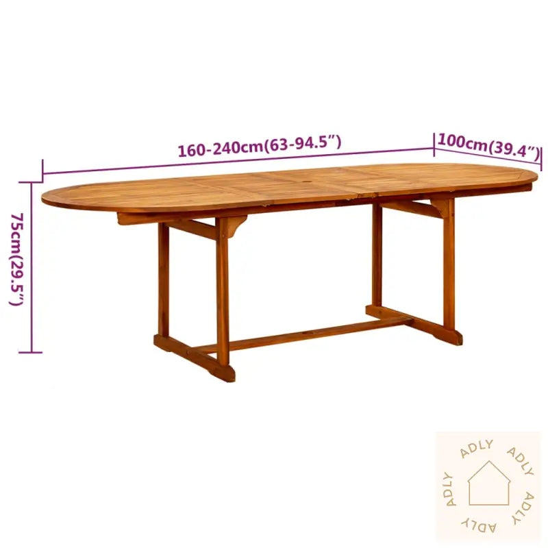 Materiale: oljebehandlet heltre akasieMål bord: (160-240) x 100 x 75 cm (L x B x H)Mål stol: 57 x 69 x 111 cm (B x D x H)Montering kreves: jaLeveransen inneholder:1 x bord8 x stoler