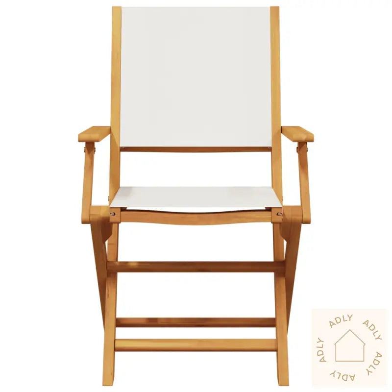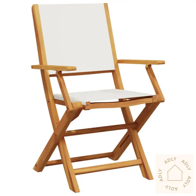 Bord:Materiale: oljebehandlet heltre akasie Mål: 60 x 60 x 75 cm (L x B x H) SammenleggbarHagestol:Farge: kremhvitMaterialer: heltre akasie med oljefinish, stoff (100% polyester)Mål: 54 x 58 x 91 cm (B x D x H)Mål sete: 40 x 38 cm (B x D)Høyde sete fra bakken: 44 cmHøyde armlene fra bakken: 63 cmMaksimal lastekapasitet (per sete): 110 kgPute inkludert: neiMontering kreves: jaLeveransen inneholder:1 x hagebord2 x hagestoler