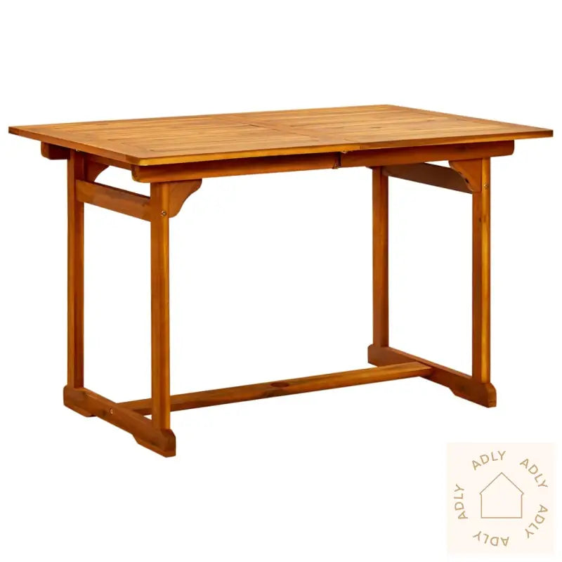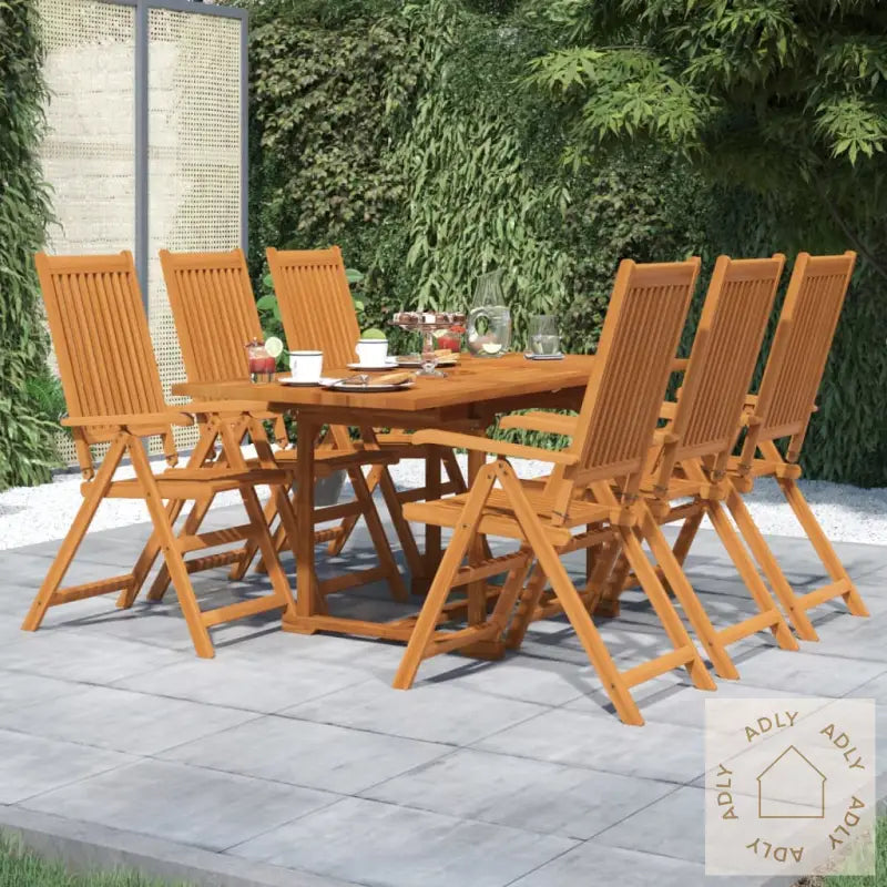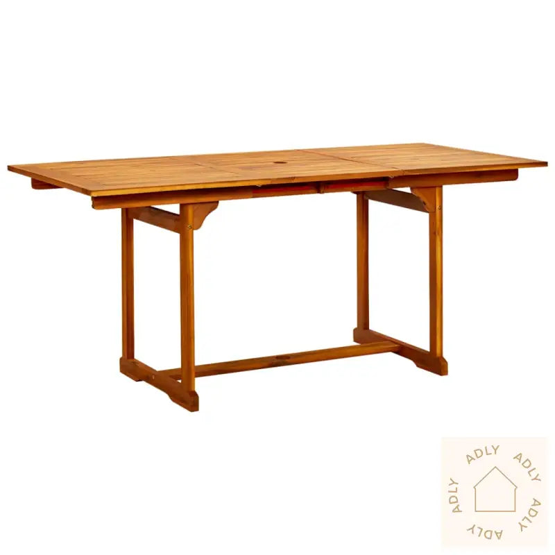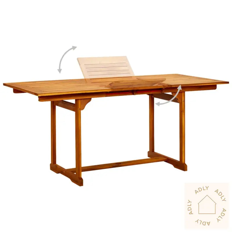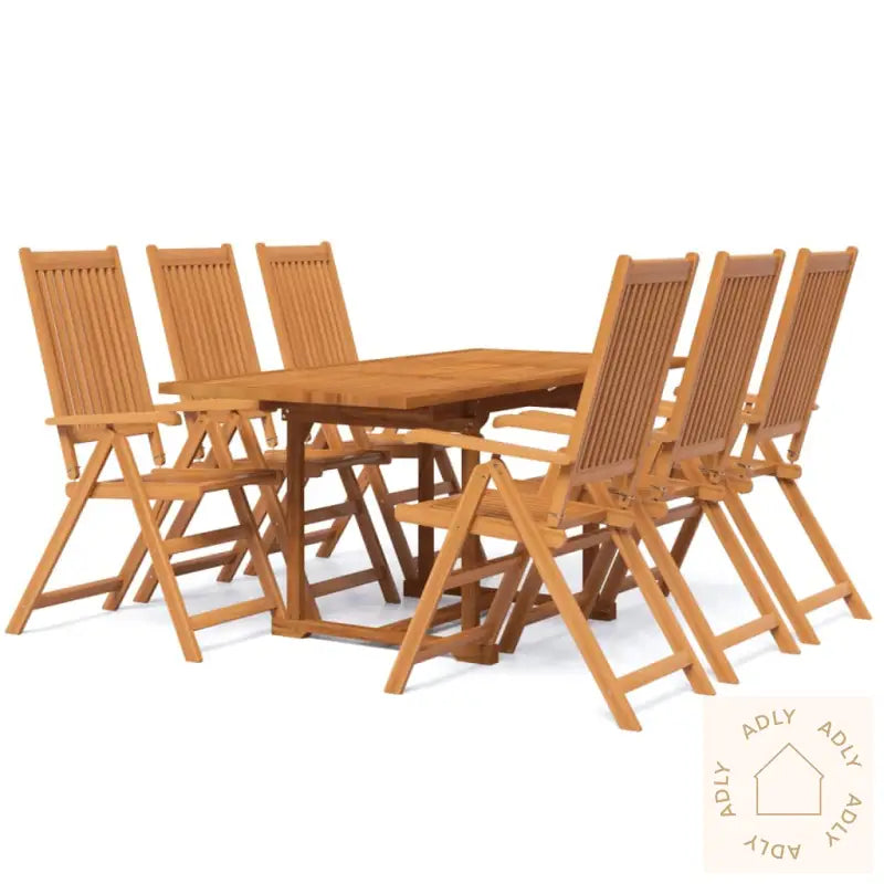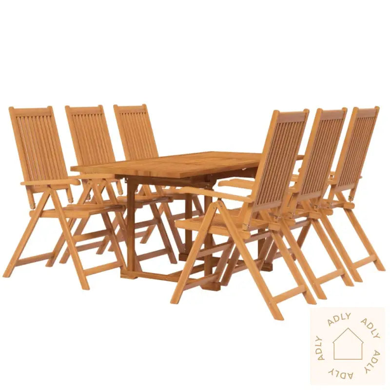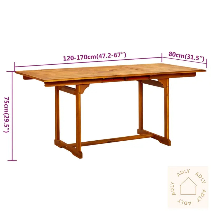 Premium materiale: Dette spisestuesettet til hage er laget av robust heltre akasie – et vakkert, tropisk løvtre som er kjempepopulært blant hagemøbler fordi det tåler været, har lang holdbarhet og et fint naturlig uttrykk. Den oljebehandlede overflaten gir ekstra beskyttelse mot fukt og gjør møbelet enkelt å holde rent med kun en fuktig klut.Uttrekksbord: Bordet har en smart uttrekksfunksjon, slik at du raskt kan utvide spiseplassen når dere blir flere til middag eller ønsker bedre plass under måltidet. Dette gir deg maksimal fleksibilitet enten det er hverdag eller fest.Justerbar og sammenleggbar stol: Hver stol kan justeres i 5 ulike posisjoner slik at du kan finne din perfekte sittestilling – enten du skal spise, slappe av eller nyte solen. Stolene kan enkelt foldes sammen etter bruk og lagres på en praktisk måte som sparer plass, perfekt for deg som vil ha god komfort uten å fylle opp uteplassen.Merk: