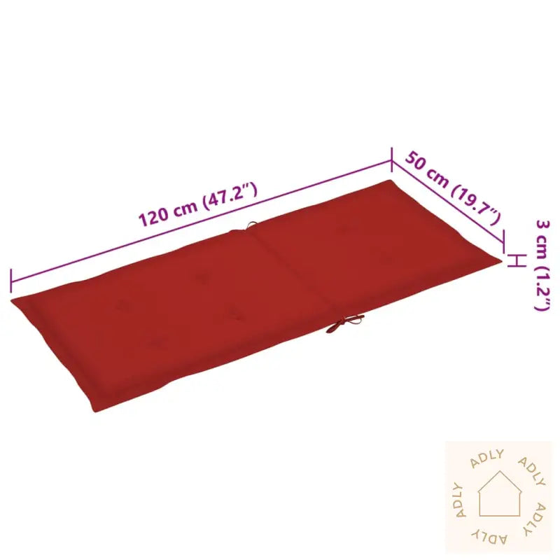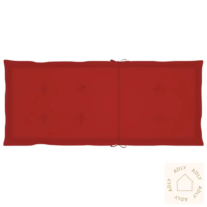 Du justerer enkelt ryggstøtten i fem forskjellige posisjoner, alt etter hva som føles mest behagelig – enten du vil sitte oppreist og lese en bok eller lene deg bakover for å nyte sola. De tykke, røde putene følger selvsagt med og gir ekstra mykhet mens du slapper av. Putetrekket er laget av 100 % polyester og behandlet for å tåle vann, så du slipper å bekymre deg for små regnskurer. Den elastiske stroppen og tauene på hver pute sørger for at de holder seg godt på plass uansett hvordan du beveger deg i stolen.