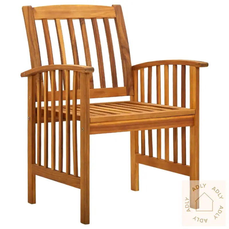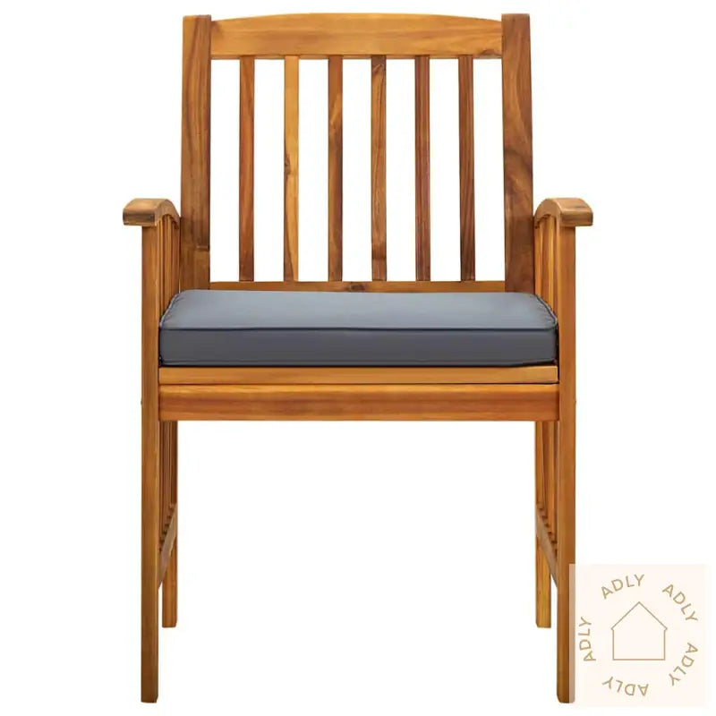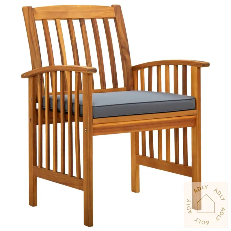 Stolene har en solid ramme i heltre akasie, behandlet med olje for økt beskyttelse og et pent utseende. Det klassiske lamelldesignet gir frisk luft rundt kroppen, og passer perfekt sammen med bordet. De medfølgende putene i mørkegrått polyester gir ekstra komfort og gjør det behagelig å sitte lenge. Putene er tykke og formstabile, og trekket tåler daglig bruk utendørs.