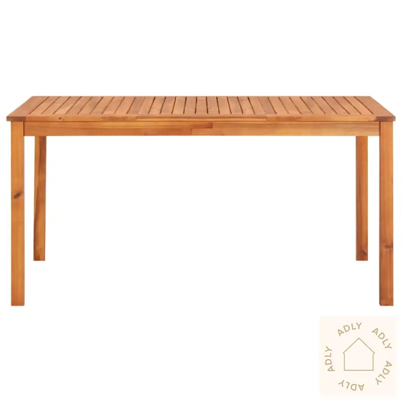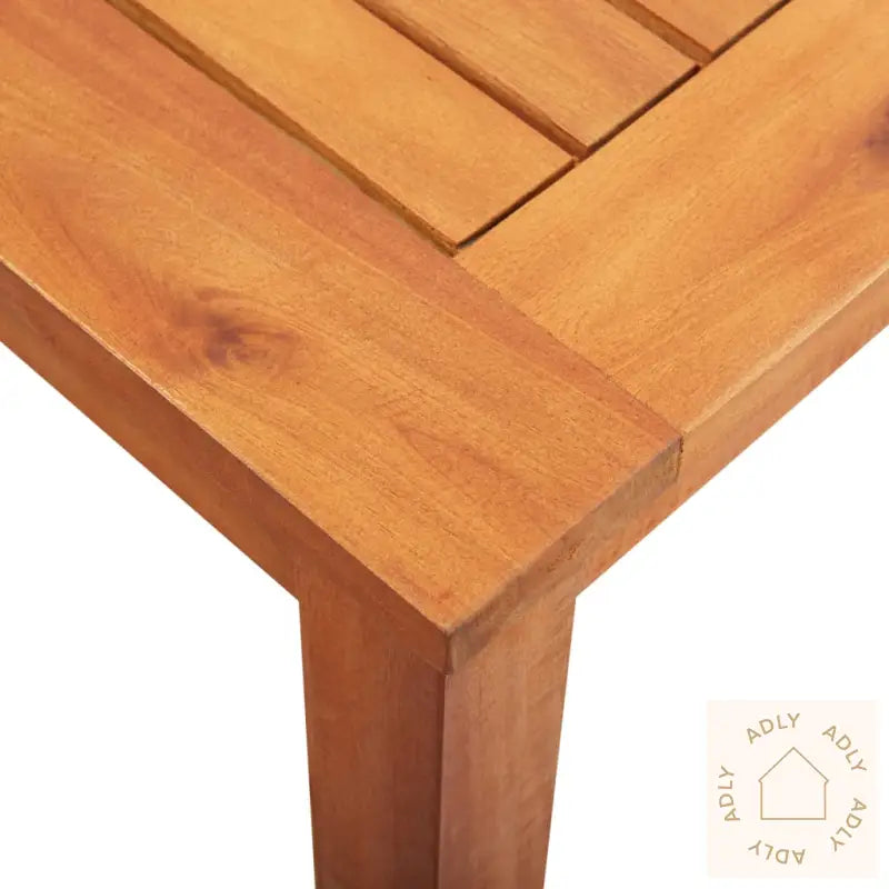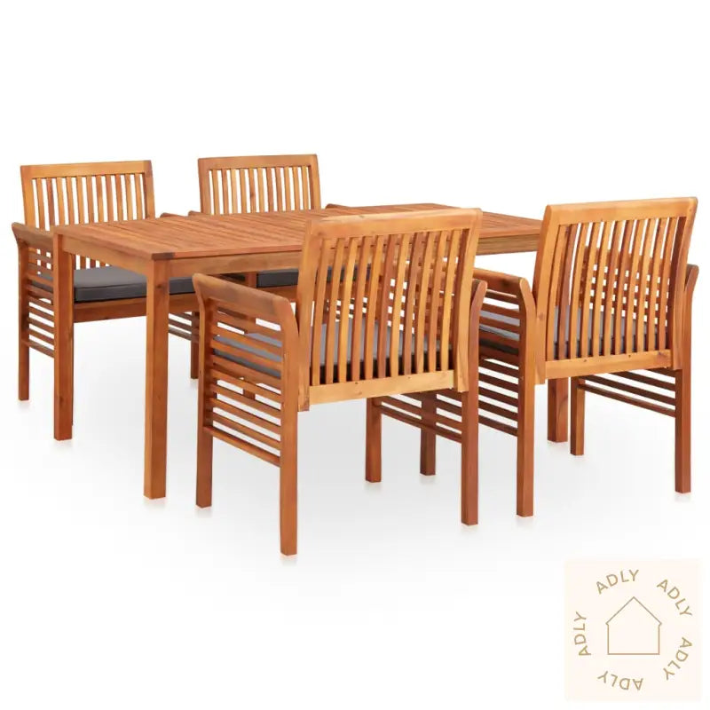 Gi terrassen eller hagen din et sjarmerende, naturlig preg med vårt enkle og stilrene spisestuesett i heltre akasie. Settet består av fem deler—perfekt når du vil samle venner eller familie til et måltid utendørs i frisk luft!
