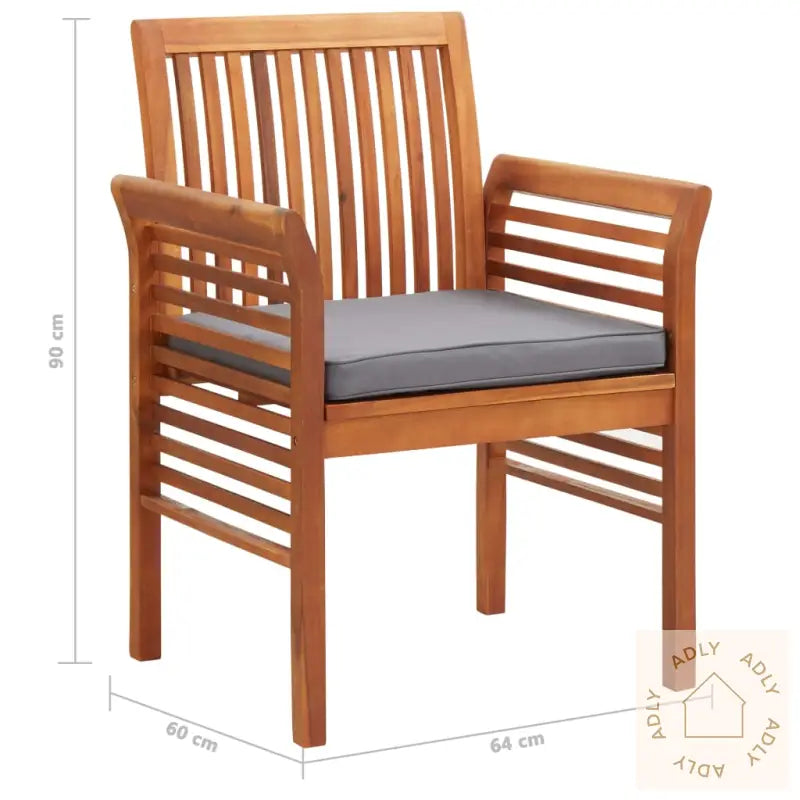 Bordet og stolene er laget av solid akasietre som har fått en holdbar oljebehandling for ekstra beskyttelse mot vær og vind. Lamelldesignet gir ikke bare god ventilasjon, men gjør også at møblene tørker raskere etter regn eller vask. Den behandlete overflaten er dessuten enkel å holde ren, så du slipper unødvendig vedlikehold. De medfølgende putene med myk skumpolstring gir ekstra komfort, slik at du kan nyte mange avslappende timer ute.