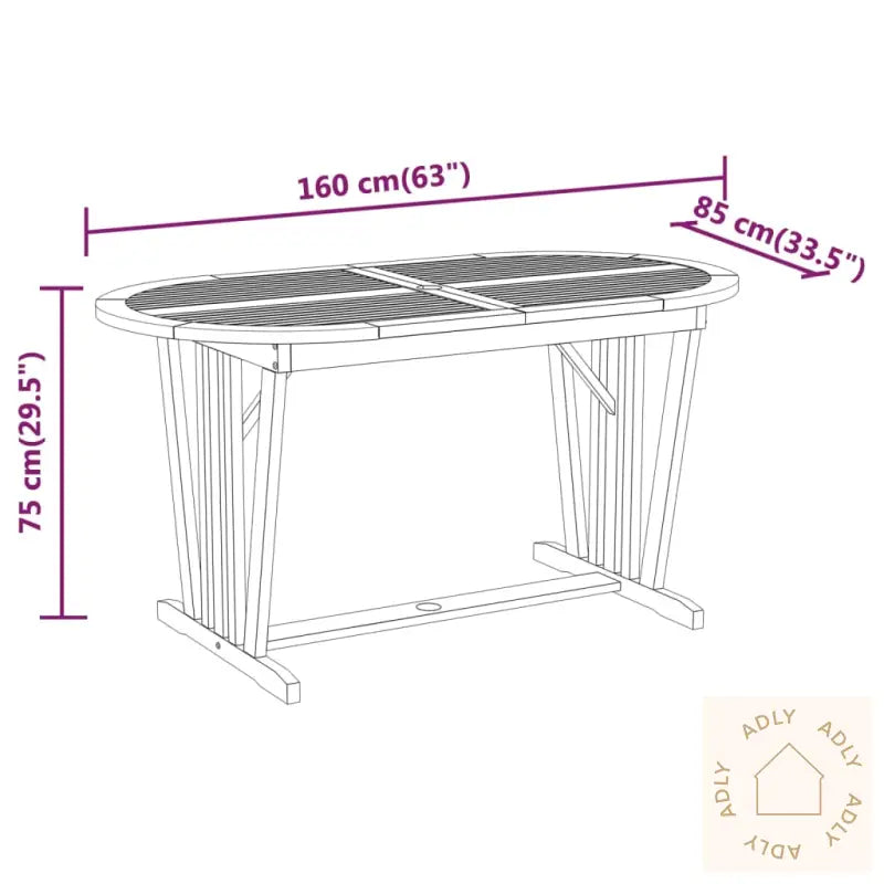 Bord:Materialer: Heltre eukalyptus med oljebehandlingMål bord: 160 x 85 x 75 cm (B x D x H)Praktisk parasollhull