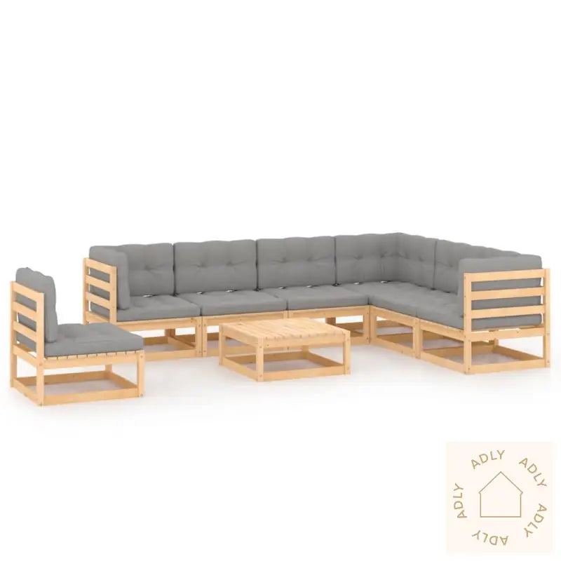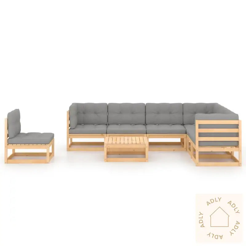 Farge pute: gråMaterialer: heltre furu (ubehandlet), stoff (100 % polyester)Mål hjørnesofa: 70 x 70 x 67 cm (B x D x H)Mål midtsofa: 70 x 70 x 67 cm (B x D x H)Mål bord: 70 x 70 x 30 cm (B x D x H)Mål setepute: 70 x 70 x 8 cm (L x B x T)Mål ryggpute: 70 x 40 x 8 cm (L x B x T)Montering kreves: jaMaksimal lastekapasitet (per sete): 110 kgLeveransen inneholder:3 x hjørnesofaer4 x midtsofaer1 x bord7 x seteputer10 x ryggputer