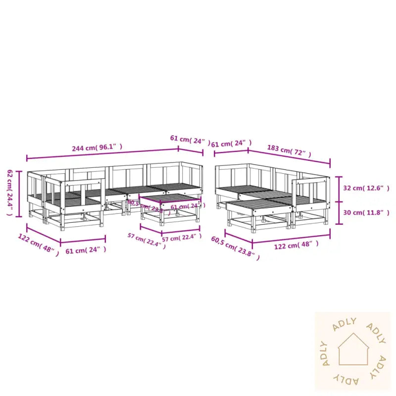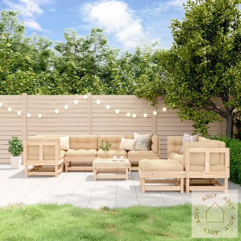 Puter er ikke inkludert, så du kan velge de putene som passer best til din stil.For å holde dine hagemøbler fine over tid, anbefales det å bruke vanntett trekk ved dårlig vær.Materiale: heltre furu (ubehandlet)Materiale lameller: kryssfinerMål hjørnesofa: 61 x 61 x 62 cm (L x B x H)Mål midtsofa: 61 x 61 x 62 cm (L x B x H)Mål fotskammel/salongbord: 61 x 60,5 x 30 cm (L x B x H)Maksimal lastekapasitet (per sete): 110 kgMontering kreves: jaLeveransen inneholder:5 x hjørnesofaer3 x midtsofaer2 x hagefotskammel/sofabord