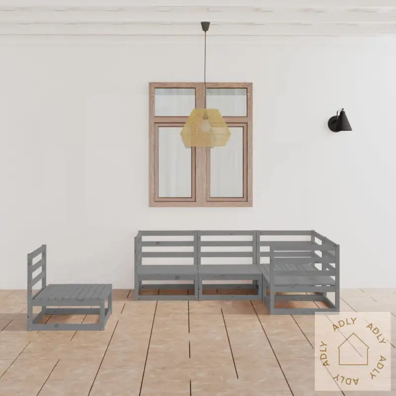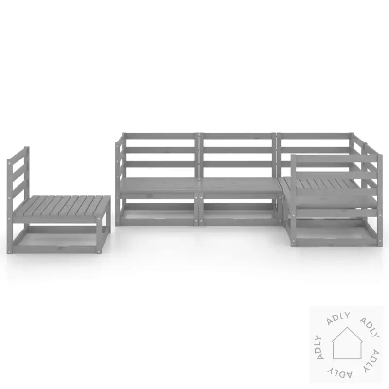 Farge: gråMateriale: heltre furuMål midt-/hjørnesofa (hver): 70 x 70 x 67 cm (B x D x H)Montering kreves: jaLeveransen inneholder:3 x hjørnesofaer2 x midtsofaer