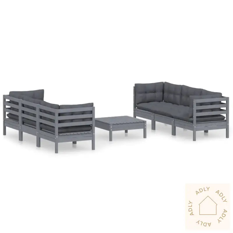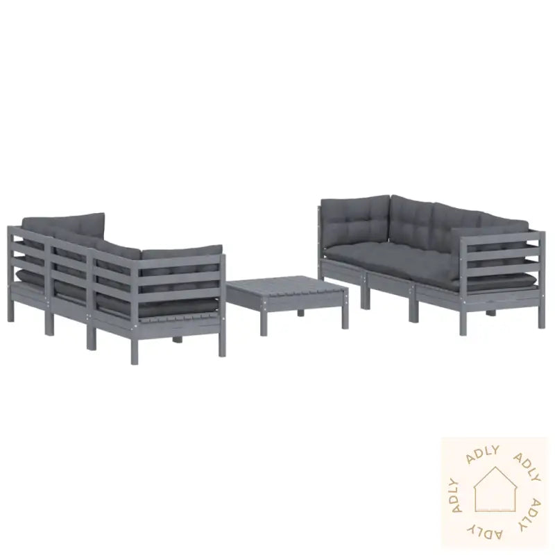 Farge: gråFarge pute: antrasittMaterialer: heltre furu, stoff (100% polyester)Mål hjørne/mellomsofa: 63,5 x 63,5 x 62,5 cm (B x D x H)Mål bord/fotskammel: 63,5 x 63,5 x 28,5 cm (B x D x H)Mål setepute: 60 x 60 x 5 cm (L x B x T)Mål rygg-/sidepute: 60 x 32 x 5 cm (L x B x T)Montering kreves: jaMaksimal lastekapasitet (per sete): 110 kgLeveransen inneholder:4 x hjørnesofaer2 x midtsofaer2 x fotskamler/bord7 x seteputer10 x rygg-/sideputer