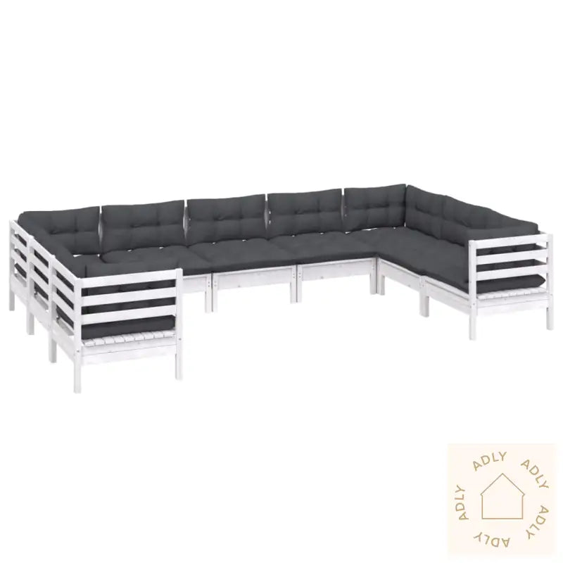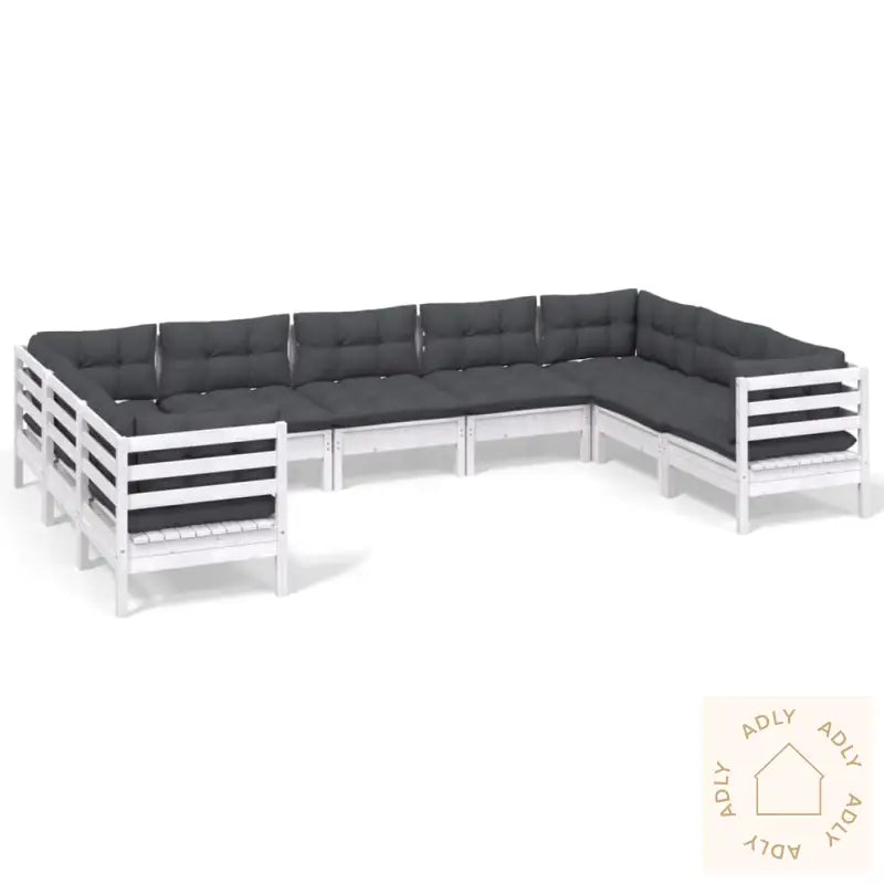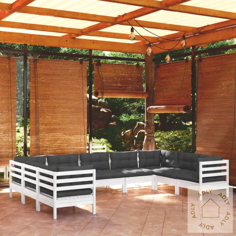 Farge: hvitFarge pute: antrasittMaterialer: heltre furu, stoff (100% polyester)Mål hjørne/mellomsofa: 63,5 x 63,5 x 62,5 cm (B x D x H)Mål setepute: 60 x 60 x 5 cm (L x B x T)Mål rygg-/sidepute: 60 x 32 x 5 cm (L x B x T)Maksimal lastekapasitet (per sete): 110 kgMontering kreves: jaLeveransen inneholder:4 x hjørnesofaer5 x midtsofaer9 x seteputer13 x rygg-/sideputer