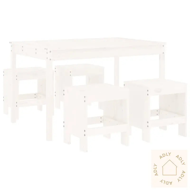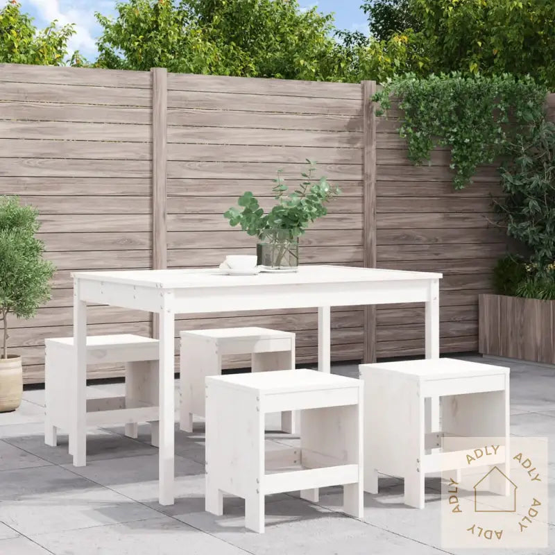Heltre furu: Det slitesterke materialet gir lang levetid og stødig bruk. Fargen og teksturen på furu skaper en varm og innbydende atmosfære blant dine utendørsmøbler.Solid topp: Bordet har en robust bordplate, ideell for servering av mat og drikke eller til å vise frem dekorasjoner. Overflaten er lett å rengjøre etter både hverdag og fest.Praktisk design: Krakkene uten ryggstøtte gir fleksibilitet; du kan sitte komfortabelt på alle sider og enkelt skyve dem under bordet for å spare plass når møbelsettet ikke er i bruk.Brede bruksområder: Det minimalistiske designet gjør at dette settet passer inn nesten overalt – bruk det som møbler til hjemmet inne, eller som en fast del av uterommet ditt.Hvis du vil bevare utseendet på hagemøblene dine lengst mulig, anbefaler vi å beskytte dem med et vanntett trekk ved dårlig vær.