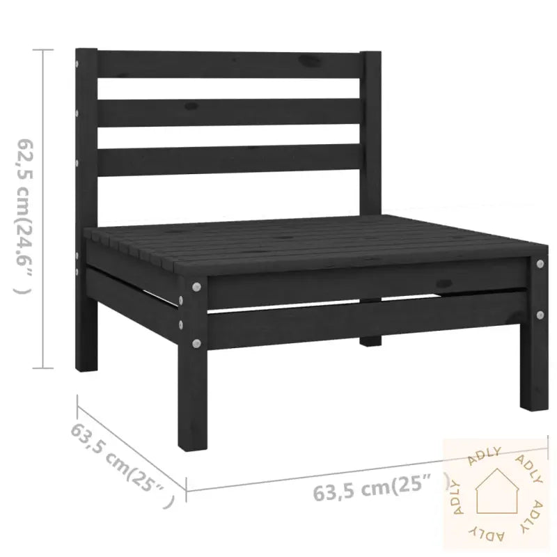 Farge: svartMateriale: heltre furuMål hjørne/mellomsofa: 63,5 x 63,5 x 62,5 cm (L x B x H)Mål bord/fotskammel: 63,5 x 63,5 x 28,5 cm (L x B x H)Montering kreves: jaLeveransen inneholder:1 x hjørnesofa1 x midtsofa3 x fotskamler/bord