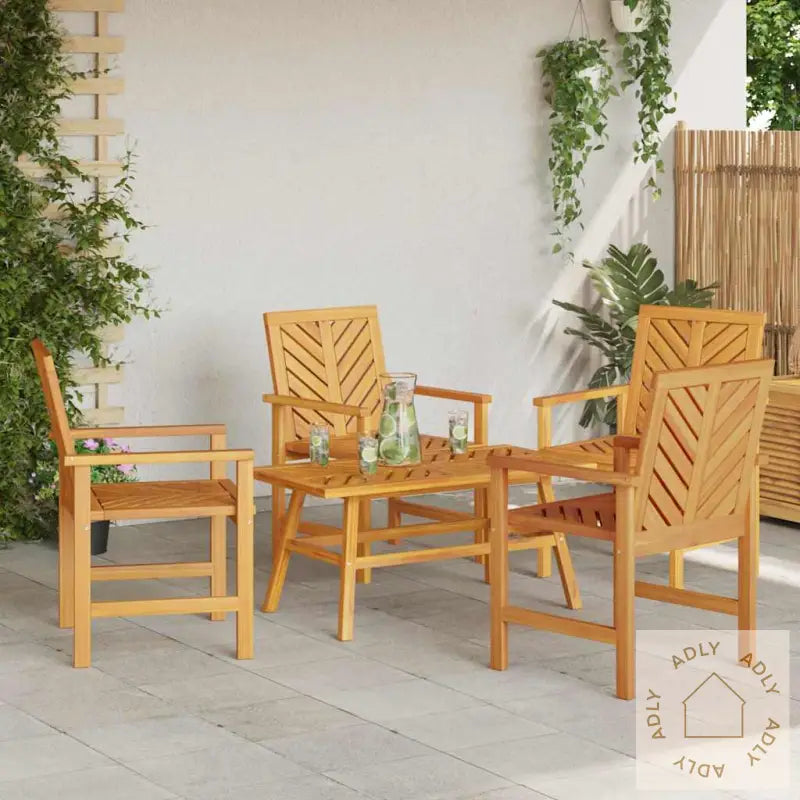 Robust bygging: Solid akasietre gjør lounge-settet slitesterkt og velegnet for norske værforhold. Designet tåler daglig bruk utendørs, og gir deg trygge og stabile sitteplasser i lang tid.Klassisk stil: Tidløst design og elegant finish gjør at møblene passer til ulike stilarter. Rene linjer og nøye utvalgte detaljer gir et eksklusivt preg, så du kan enkelt friske opp uteplassen din med kvalitetsrike møbler til hjemmet.Komfortable seter: Fire romslige sitteplasser med flate armlener, dype seter og god støtte gir en komfortabel opplevelse – perfekt for alt fra lange grillkvelder til hyggelige morgenkaffe. Lounge-settet innbyr til mange fine timer med venner og familie utendørs.Lett å ta vare på: Den oljede overflaten beskytter mot fuktighet og gjør det enkelt å holde hagemøblene rene. Alt du trenger er å tørke av med en fuktig klut – ingen omfattende vedlikeholdsrutiner.Allsidig bruk: Passer like bra til middager, små samlinger eller bare avslapping i sola. Møblene tilpasses lett ulike behov – enten du inviterer gjester eller nyter litt egentid ute.Antall gjenstander: 3Farge: BrunForm: RektangulærMateriale: Solid akasietreInnendørs/utendørs: Kun utendørsBeskyttelse inkludert: NeiRom: Garten und TerrassegKapasitet: Plass til 4Maksimalt antall personer: 4Overflatehøyde: 2 cmBenhøyde: 45 cmSittehøyde: 48 cmSittekapasitet: 1Gynger: NeiMerke: Leveransen inneholder: 4 stolerMontering nødvendig: JaAnbefalt antall personer til montering: 2