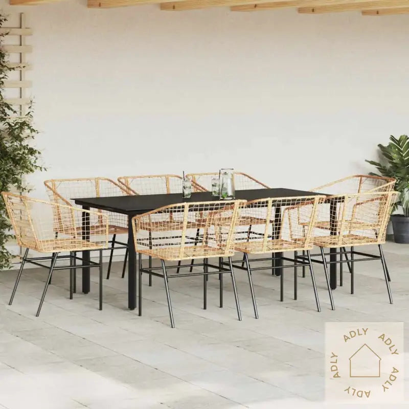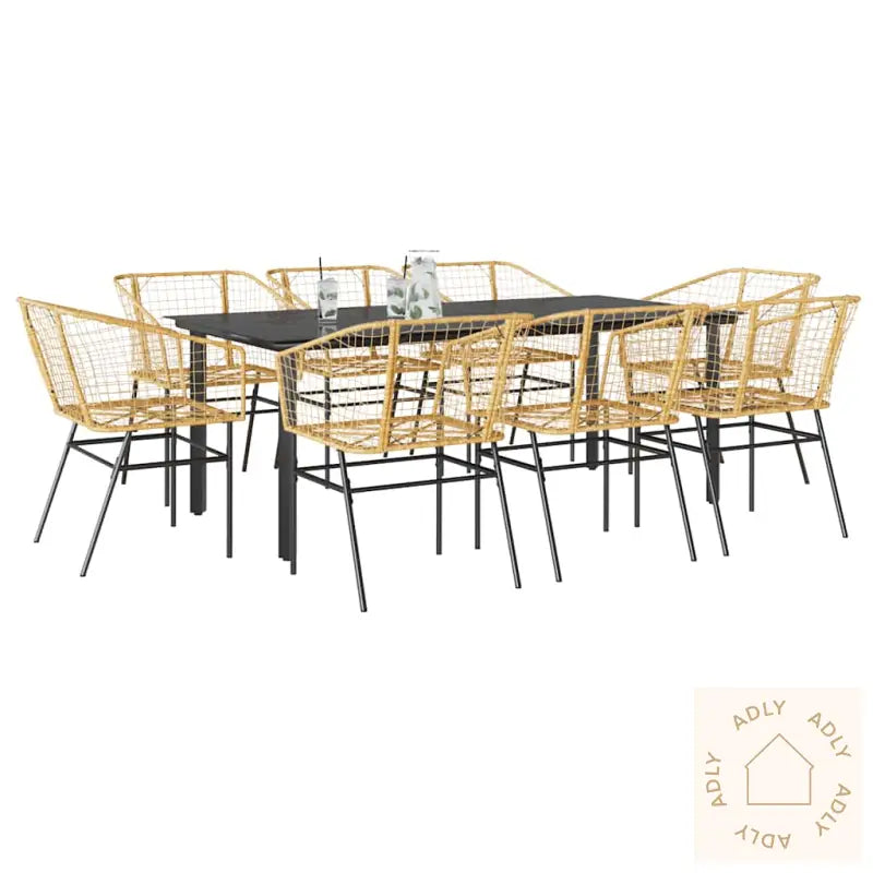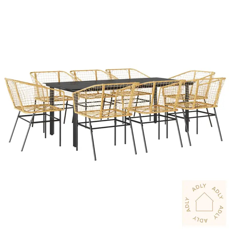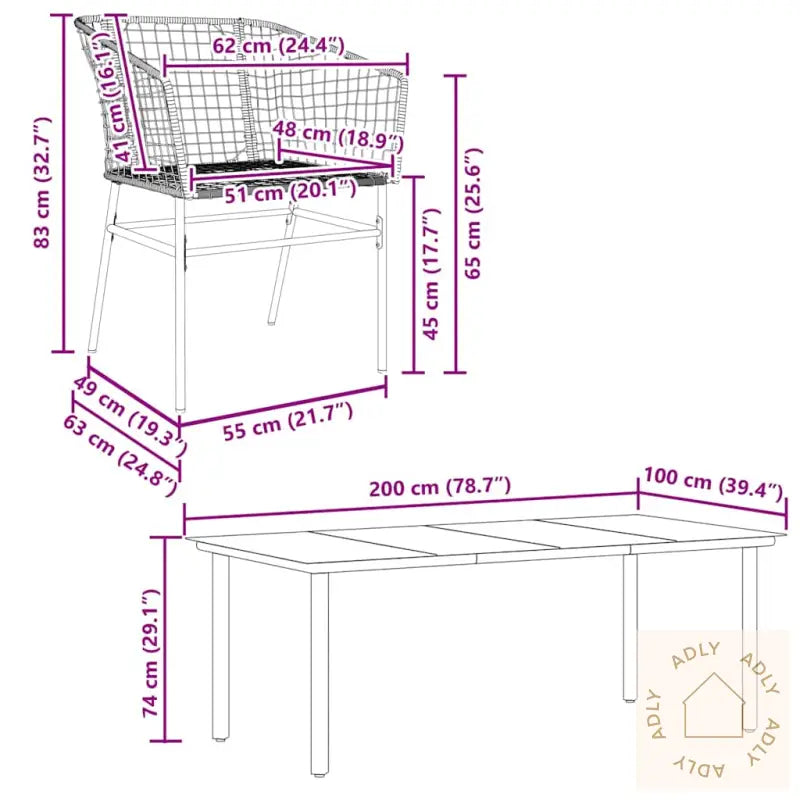 For å forlenge levetiden til hagemøblene, anbefaler vi å bruke et vanntett trekk slik at de holder seg pene sesong etter sesong.Maksimal lastekapasitet (per sete): 110 kgUV-bestandig – fargene holder seg fine selv etter mange solrike dagerMontering kreves: jaBord:Farge: svartMaterialer: pulverlakkert stål, herdet glassMål: 200 x 100 x 74 cm (L x B x H)Stol:Farge: brunMaterialer: PE-rotting, pulverlakkert stålMål (hver): 62 x 63 x 83 cm (B x D x H)Mål sete: 51 x 48 cm (B x D)Høyde sete fra bakken: 45 cmHøyde armlene fra bakken: 65 cmPute inkludert: neiLeveransen inneholder:1 x hagebord8 x hagestoler