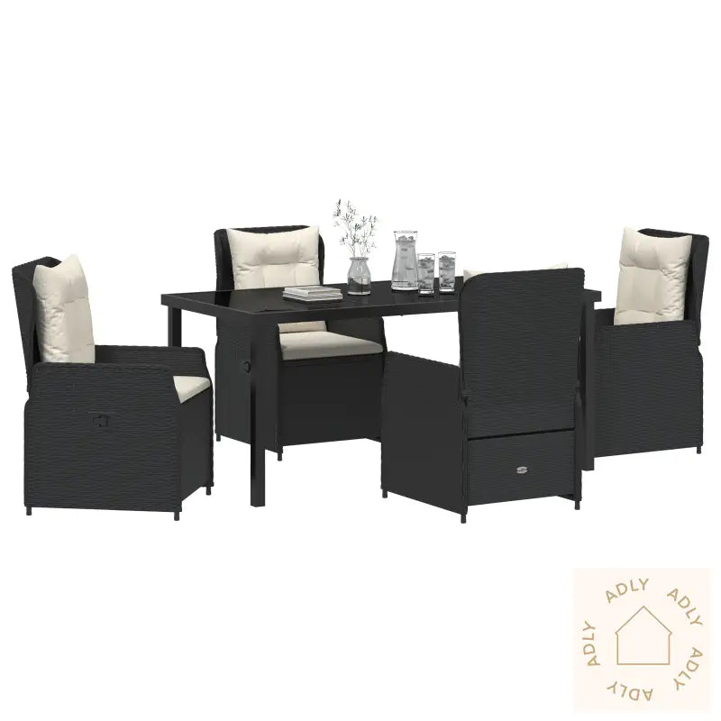 Denne 5-delte hage spisegruppen kombinerer moderne stil med praktiske løsninger for utendørs bruk. Den har en robust stålramme og slitesterk poly rattan som tåler vær og vind, perfekt for norske forhold. Perfekt til måltider med familie og venner på balkong eller terrasse – denne gruppen gir deg følelsen av hjemme uansett anledning. Tidløs design gjør den også til et fleksibelt valg blant ulike typer hagemøbler og andre møbler til hjemmet.