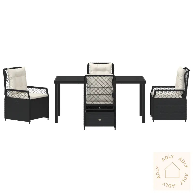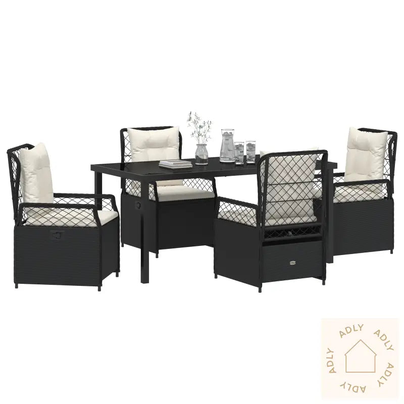 PE rottingen krever lite stell og tåler regn og sol, så du kan trygt bruke møblene ute hele sesongen uten bekymringer.Stolene kommer med justerbar ryggstøtte som enkelt reguleres med håndtak – slapp av akkurat slik du selv ønsker det, enten du vil spise, lese eller ta en hvil.Komfortable, tykke puter med avtagbare trekk sørger for at du alltid sitter godt – enten du inviterer venner over, eller nyter en stille morgen ute alene.Den robuste rammen av pulverlakkert stål gir stabilitet og lang levetid, noe som gjør disse møblene til hjemmet solide og pålitelige også for daglig bruk utendørs.Antall produkter: 5 (4 stoler og 1 bord)Farge: SvartForm: Rektangulær – praktisk form til både servering og avslappingMateriale: Syntetisk poly rott gir den autentiske rottinglooken, men er mer holdbart for norske forholdFinish: PulverlakkertKan brukes både inne og uteTrekk medfølger ikkePasser for alt fra hage til terrasseBatterier: Ikke nødvendigMaks belastning pr. sitteplass: 110 kgMaks antall personer: 4Dimensjoner (min-maks): 83-93 cm høydeSittedybde: 55 cm gir deg ekstra benplass og god sittekomfortStilrene og solide møbler til hjemmet med god kapasitetGynging/stige: Ikke inkludertMerke: vidaXLInnhold: 4 hagemøbler (stoler), 1 bord – komplett sett for hele familienMontering kreves, og det anbefales å være to personer for enkel og rask oppsetting