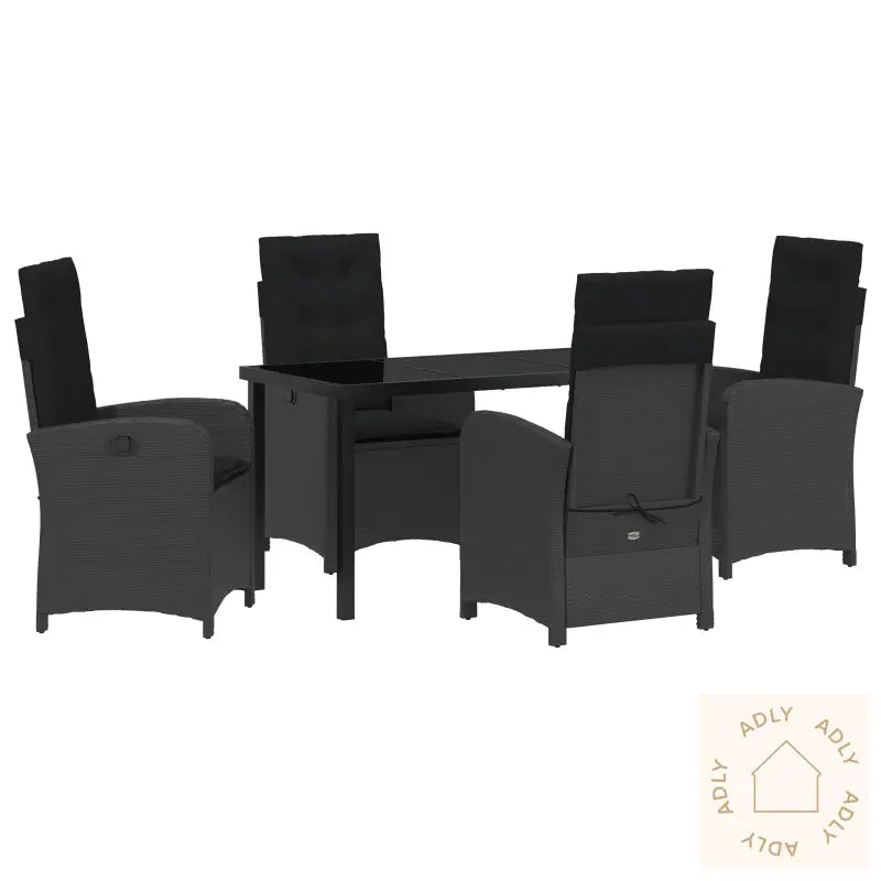 De myke, tykke putene har avtakbare trekk, så rengjøring går lett og raskt.Stolene har justerbar ryggstøtte slik at du alltid finner din perfekte sittevinkel, uansett om du slapper av alene eller sammen med venner.Poly rottingen er UV-resistent og beholder utseende og kvalitet selv etter lang tids bruk utendørs.Den robuste stålrammen gir ekstra god støtte og stabilitet, og hver stol tåler opptil 110 kg belastning.Settet er enkelt å montere, med brukervennlige og detaljerte instruksjoner som gjør at du kan være klar på kort tid.Antall deler: 5 (4 stoler + 1 bord)Farge: SvartForm: Rektangulær, passer både små og store uteplasserMateriale: Poly rotting, slitesterkt og vedlikeholdsvennligFinish: Pulverlakkert stål for ekstra holdbarhetKan brukes både innendørs og utendørsTrekk inkludert: NeiBatterier inkludert: NeiMaks personer: 4Maks vekt på stol: 110 kgMin-Max høyde på rygg: 83–93 cmSetedybde: 50 cm – gir god sittekomfortSittekapasitet: 4 personerLeveres med: 4 stoler og 1 bordMontering: Ja, anbefalt for 2 personer