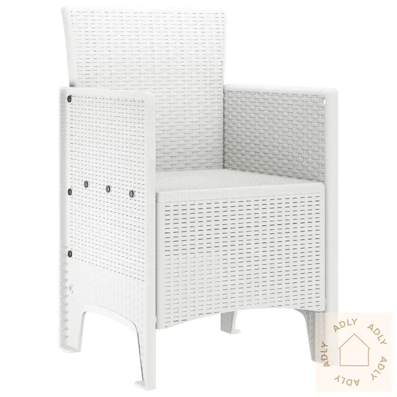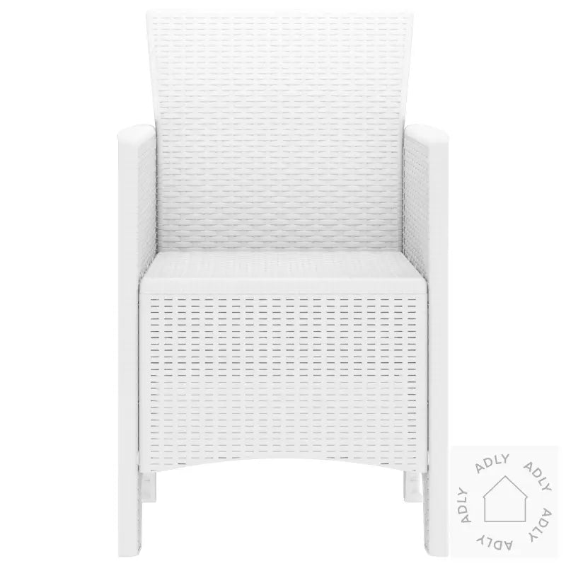 Dette hagesettet med stoler gir deg en smart kombinasjon av funksjonalitet og stil, perfekt for deg som vil nyte uterommet sammen med venner eller familie. Takket være den robuste konstruksjonen i syntetisk poly rottning får du utemøbler som skiller seg ut med sitt moderne, hvite design samtidig som de tåler utendørs bruk hele året. Settet passer flott på balkongen, terrassen eller rett ute i hagen, og gir uterommet ditt et friskt løft.