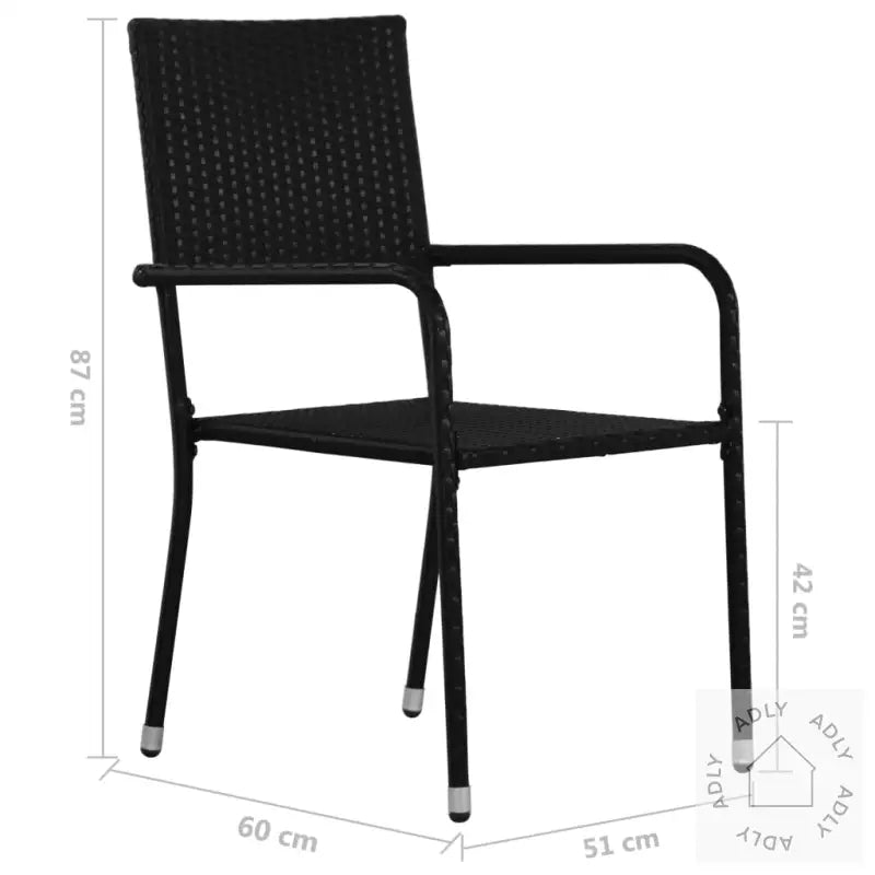 For å bevare utendørsmøblene dine pene over tid anbefaler vi å bruke vanntett trekk når de ikke er i bruk.Farge: svartMaterialer: PE-rotting, stålMål: 51 x 60 x 87 cm (B x D x H)Bredde sete: 48 cmHøyde sete fra bakke: 42 cmMaksimal lastekapasitet (per sete): 110 kgLett å flytte på og stablebarMontering kreves: jaLeveransen inneholder:4 x hagestoler