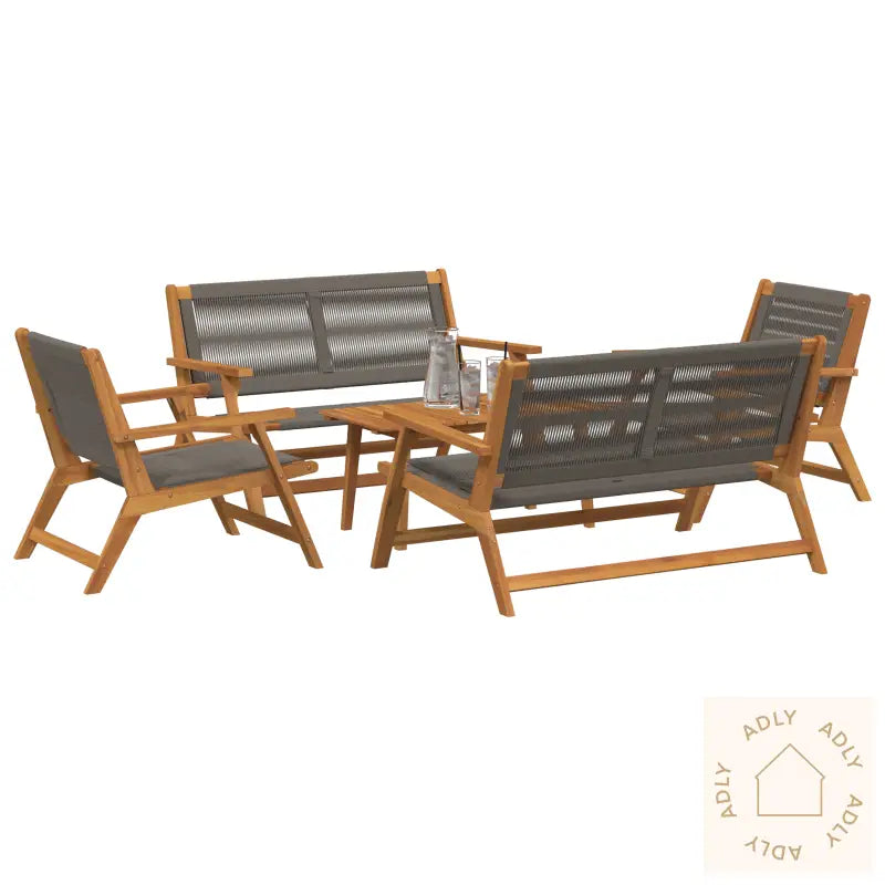 Moderne utendørs stil: Det eksklusive designet i grått tau kombinert med det varme uttrykket til akasietre gir et elegant blikkfang på verandaen, balkongen eller i hagen. Settet passer like godt til rolige kaffepauser som til sosiale sammenkomster.