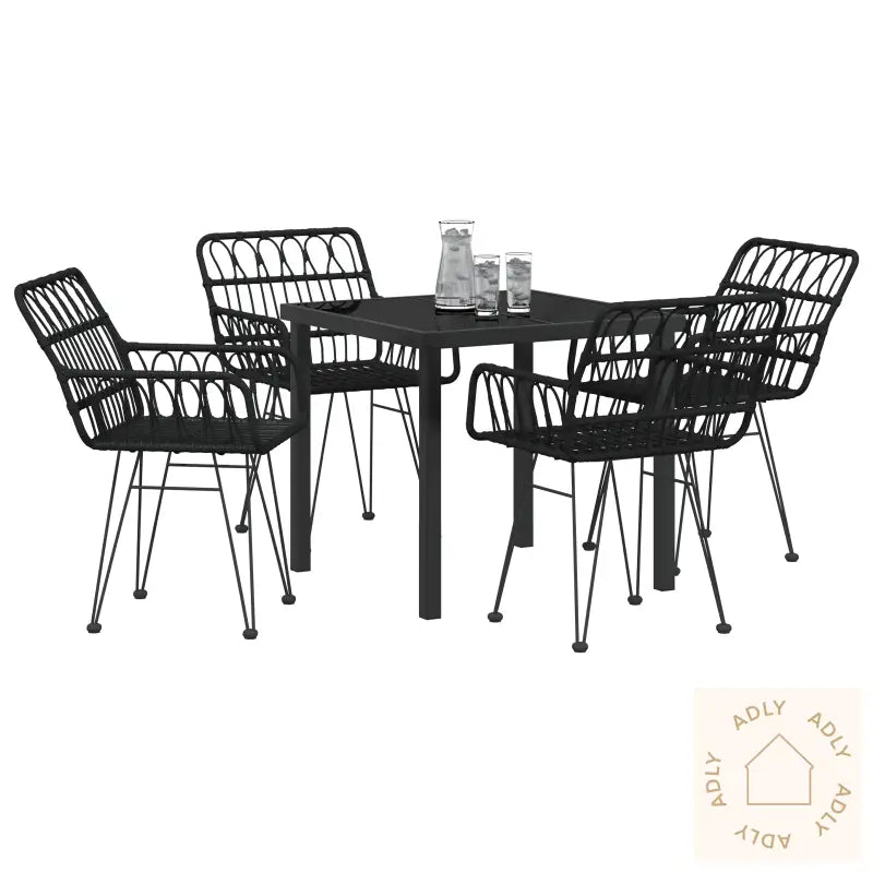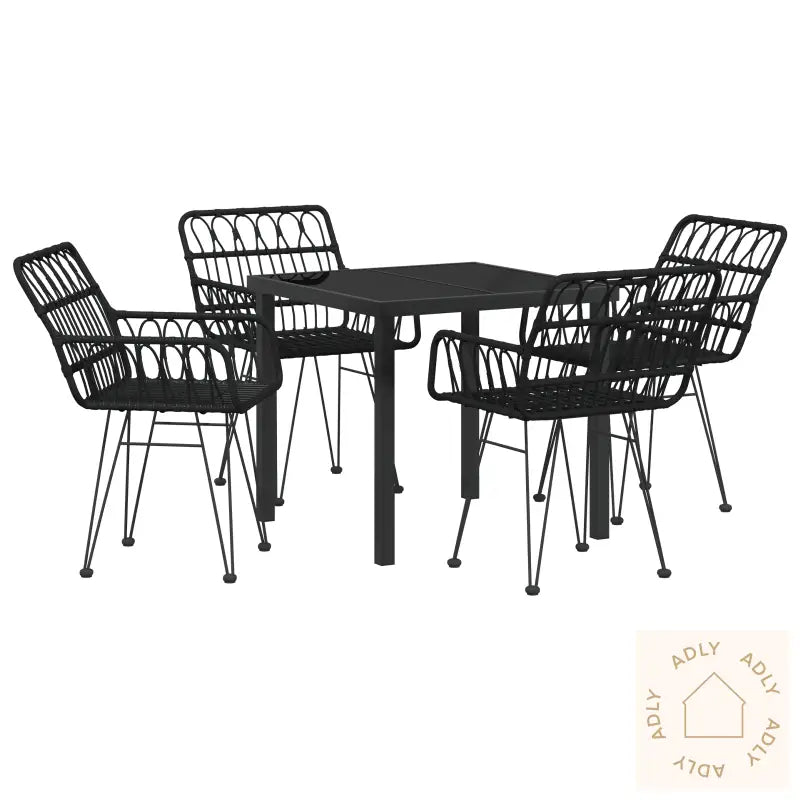 Antall gjenstander: 5Farge: SvartForm: RektangulærMateriale: Syntetisk poly rattanFinish: MattInnendørs/Utendørs: Begge delerTrekk inkludert: NeiRom: Garten und TerrassegBatterier inkludert: NeiHodegjerde inkludert: NeiKapasitet: 2 stolerMaksimalt antall personer: 4Beinhøyde: 47 cmSittedybde: 46 cmSittekapasitet: 1Gynger: NeiStege: NeiMerke: Innhold ved levering: 1 x Hagebord, 4 x HagemøblerMontering kreves: JaAnbefalt antall personer for montering: 1