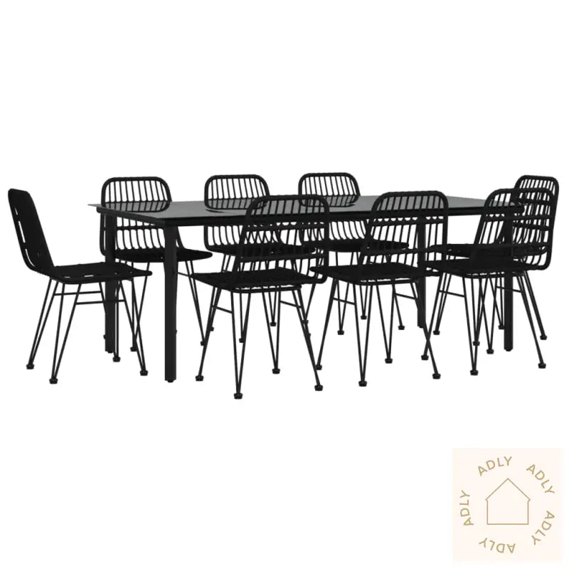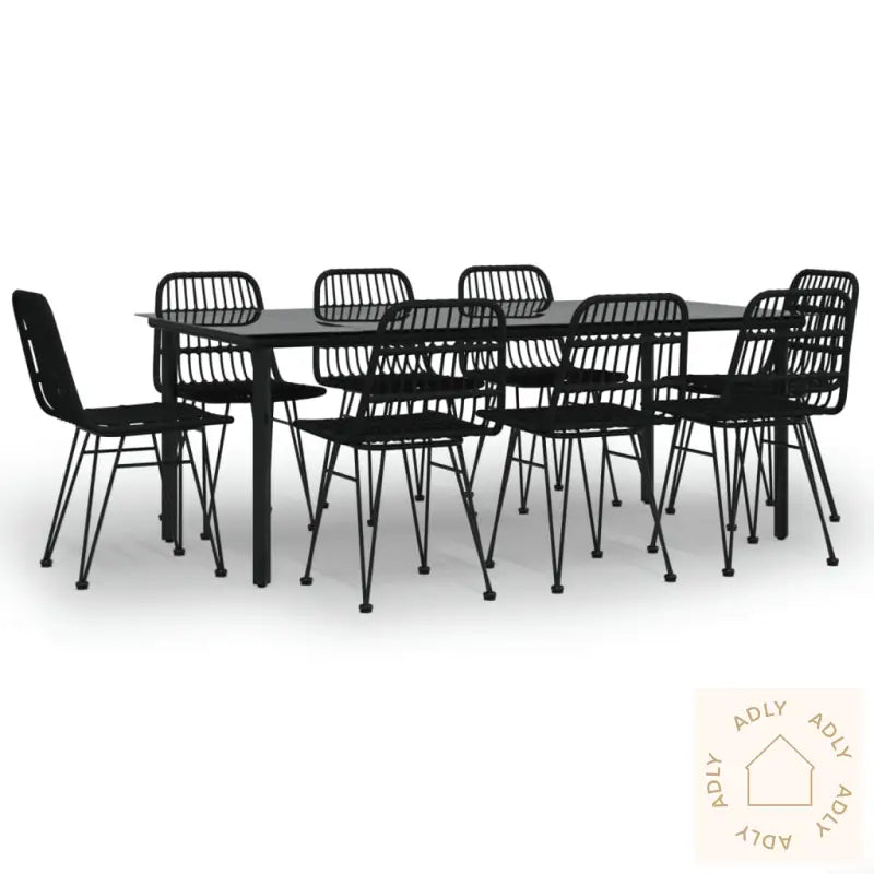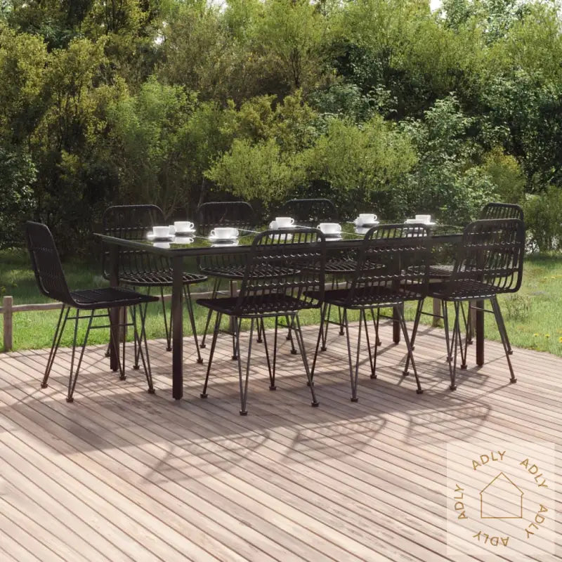 For å forlenge levetiden til utemøblene dine, anbefaler vi at du bruker et vanntett trekk når møblene ikke er i bruk.Alle deler leveres med enkel og tydelig monteringsveiledning, så det er lett å sette sammen hagemøblene selv hjemme.Bord:Farge: svartMaterialer: pulverlakkert stål, herdet glassMål: 200 x 100 x 74 cm (L x B x H)Stol:Farge: svartMaterialer: stål, polyetylen med rottingutseendeMål: 48 x 62 x 84 cm (B x D x H)Mål sete: 48 x 44 cm (B x D)Høyde sete: 47 cmLeveransen inneholder:1 x bord8 x stoler