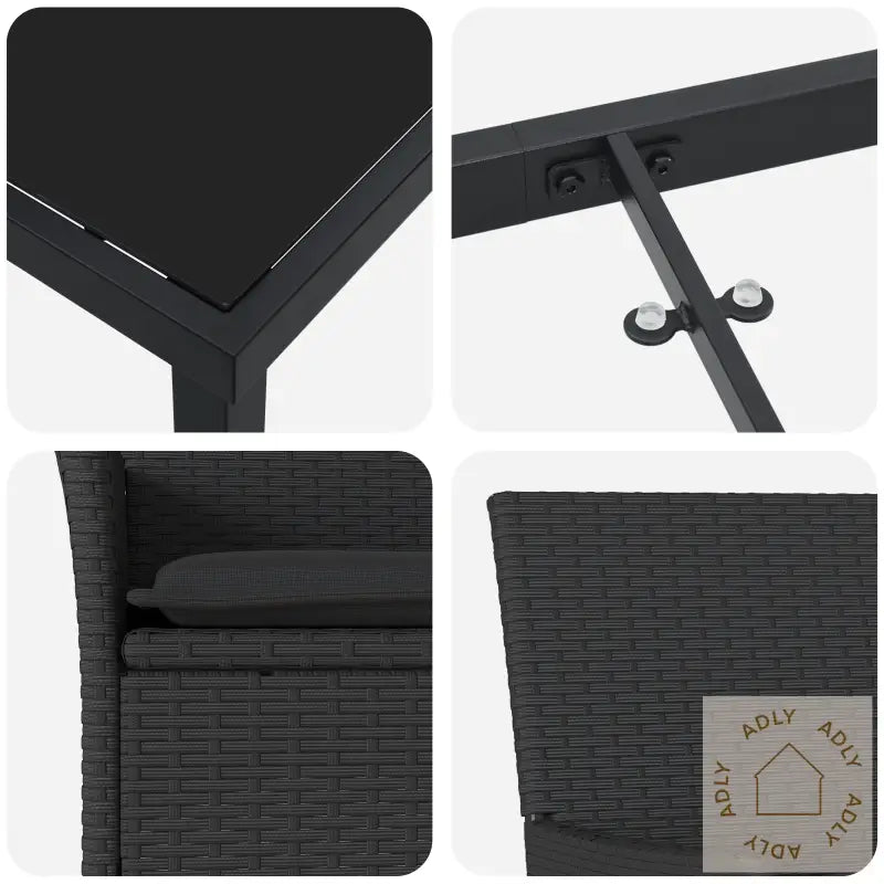 Dette hage bordsettet er skapt for ekte utendørs glede, enten det er på terrassen, i hagen eller på en romslig balkong. Kombinasjonen av moderne stil og smarte løsninger gjør det enkelt å få til en hyggelig samlingsplass ute. Den tidløse, svarte finishen gir settet et elegant uttrykk og sørger for at det passer med de fleste typer hagemøbler og andre møbler til hjemmet. De myke putene tilbyr god støtte, noe som gjør det ekstra behagelig å sitte lenge – perfekte rammer for alt fra sommermiddager til rolige kaffepauser.