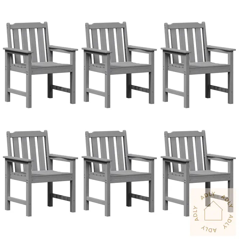 Lamelldesignet på stolens rygg og sete gir ikke bare et stilrent uttrykk som passer inn blant moderne møbler til hjemmet, men sørger også for luftig komfort selv på varme sommerdager – så her kan du slappe av lenge uten å bli klam.Solide, flate armlener og støttende rygg sørger for ekstra behagelig sittestilling, så lange måltider ute blir en nytelse. Dette er hagemøbler som inviterer til både middag og sosiale kvelder på terrassen eller balkongen.Den lysegrå fargen gir et friskt og moderne preg, samtidig som den er nøytral nok til å gli rett inn i de fleste uteområder. Enten du skal fornye terrassen eller gjøre hagen mer innbydende, gir dette settet deg både funksjon og moderne stil.Smart utformet for enkel montering med vanlige verktøy – du trenger ikke være ekspert for å sette disse sammen. Et praktisk valg for alle som ønsker tidløse og enkle møbler.Med sine sjenerøse mål (65,5 cm lang, 55,5 cm dyp, 88 cm høy) får du god plass til å sitte komfortabelt – og alle seks stolene gir rikelig plass til hele selskapet.Antall varer: 6Farge: LysegråForm: RektangulærFinish: TrestrukturInnendørs/Utendørs: Kun utendørsTrekk inkludert: NeiRom: Garten und TerrassegBatterier inkludert: NeiKapasitet: 6 stolerMaks antall personer: 6Beinhøyde: 45,00 cmSittedybde: 50,00 cmSittekapasitet: 1Gyngestoler: NeiMerke: Leveranse inneholder: 6 utendørstolerMontering kreves: JaAnbefalt antall personer for montering: 2