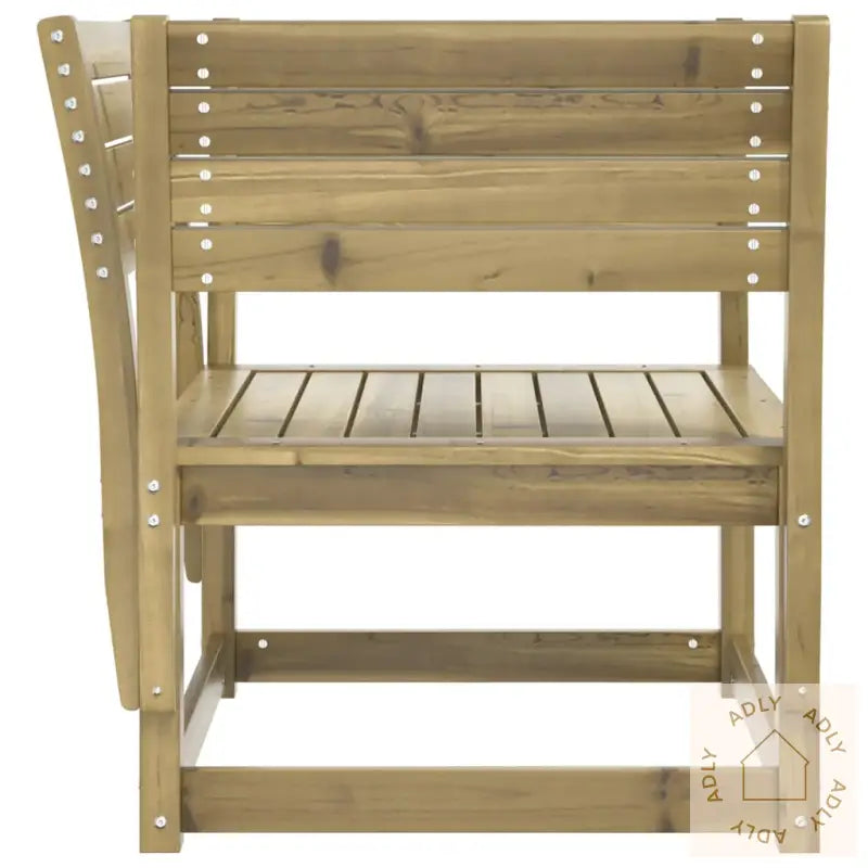 Impregnert treverk: Stolen er laget av solid, trykkimpregnert furu, som er kjent for sitt naturlige og rustikke utseende med synlige årringer og karakteristiske kvister. Denne behandlingen beskytter effektivt treverket mot fukt, råte og slitasje fra vær og vind, slik at du får hagemøbler som varer lenge og krever lite vedlikehold.Komfortabel sitteopplevelse: Hagestolens ryggstøtte og armlener gir ekstra støtte, slik at du kan lene deg tilbake og slappe av på en god måte. Enten du vil lese en bok eller bare nyte naturen, får du en komfortabel plass utendørs.Lamelldesign: Stolsetet og -ryggen har et lamelldesign som sørger for god ventilasjon. Dette gjør at regnvann ikke samler seg, så stolen tørker raskere etter nedbør og holder seg pent lenger, noe som er ideelt for alle som setter pris på solide utemøbler.Modulært design: Med sitt modulære design kan stolen enkelt flyttes på og kombineres med andre segmenter fra den samme serien. Du kan utvide hageløsningen akkurat slik du ønsker, og skape en fleksibel sone med hagemøbler som tilpasses både små og store uterom. Modulært design gir deg maksimal frihet til å tilpasse møblene til hjemmet etter behov!Godt å vite: