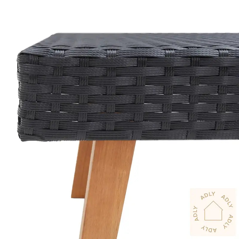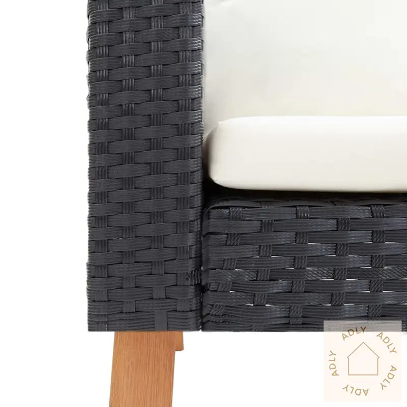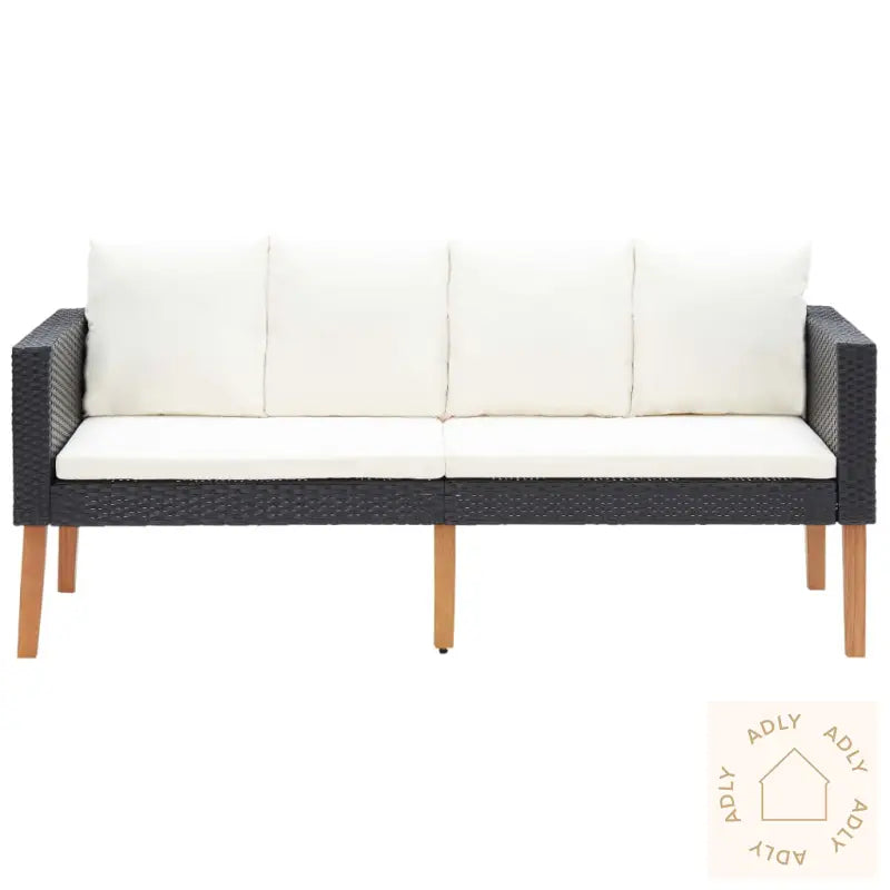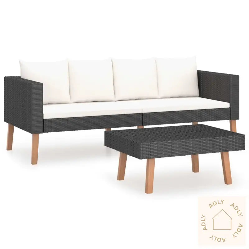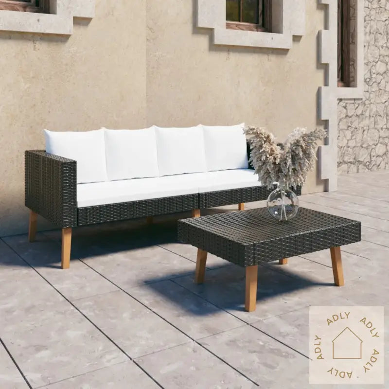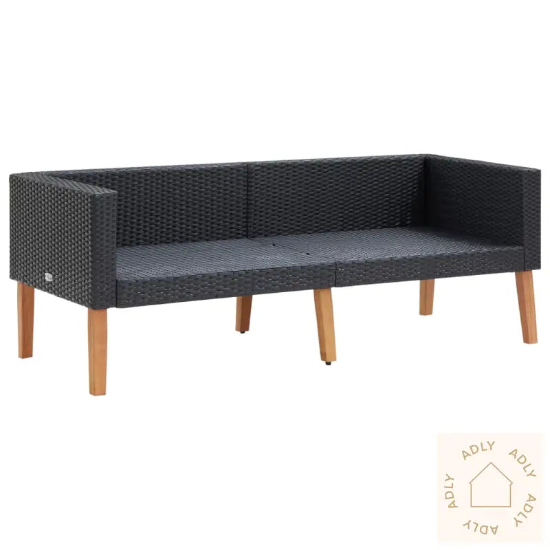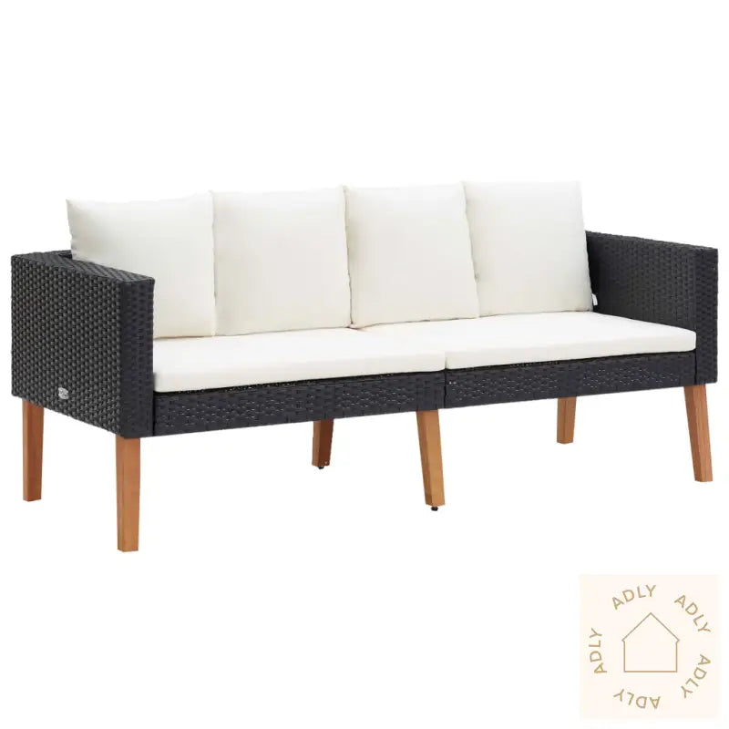 Farge polyrotting: svartFarge pute: kremhvitMaterialer: PE-rotting, pulverlakkert stål, stoff (100 % polyester), eukalyptus med teakutseendeMål 2-seters sofa: 165 x 67 x 60 cm (B x D x H)Tykkelse setepute: 5 cmMål salongbord: 70 x 50 x 33 cm (B x D x H)Montering kreves: jaLeveransen inneholder:1 x 2-seters sofa1 x salongbord2 x seteputer4 x ryggputer