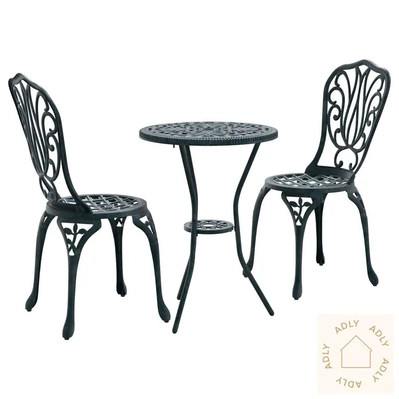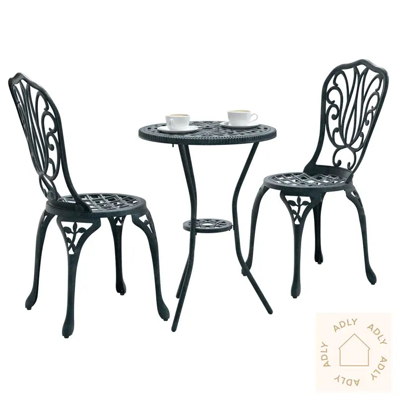 Elegant sete: De to medfølgende stolene har vakre ryggstøtter og sitter veldig behagelig, så du kan nyte tiden ute alene eller sammen med noen.Holdbar konstruksjon: Produsert i solid støpejern er dette hagemøbelsettet laget for å tåle alle slags værforhold. Perfekt uansett sesong og alltid klart til bruk ute, år etter år.Allsidig bruk: Dette spisebordsettet passer til alt fra små sammenkomster til rolige frokoster og kveldsmåltider. Supert valg for deg som ønsker praktiske, plassbesparende og pene utendørsmøbler på terrassen, på balkongen eller i hagen.Kompakt størrelse: Bordet har en praktisk diameter på 60 cm, og de to stolene tar minimalt med plass, slik at det lett får plass selv i mindre utendørsområder.Fargekoordinering: Settet leveres i en flott grønnfarge med svarte detaljer, som gir ekstra liv til uteplassen, enten det er i hagen eller på balkongen. Gjør området ditt mer innbydende og gjennomført.Farge: GrønnForm: RundMateriale: StøpejernFinish: MaltInnendørs/Utendørs: Kun utendørsDeksel inkludert: NeiRom: Hage og terrasseBatterier inkludert: NeiHodegjerde inkludert: NeiKapasitet: Passer for 2 personerMaksimalt antall personer: 2Maksimal vekt: 200 kgDimensjoner: 53 x 53 x 70,5 cm (L x B x H)Overflatehøyde: 2 cmBeinhøyde: 40 cmSittedybde: 42 cmSittekapasitet: 2Heng: NeiStige: NeiMerke: Levering inkluderer: 1 bord, 2 stolerMontering kreves: JaAnbefalt antall personer for montering: 1