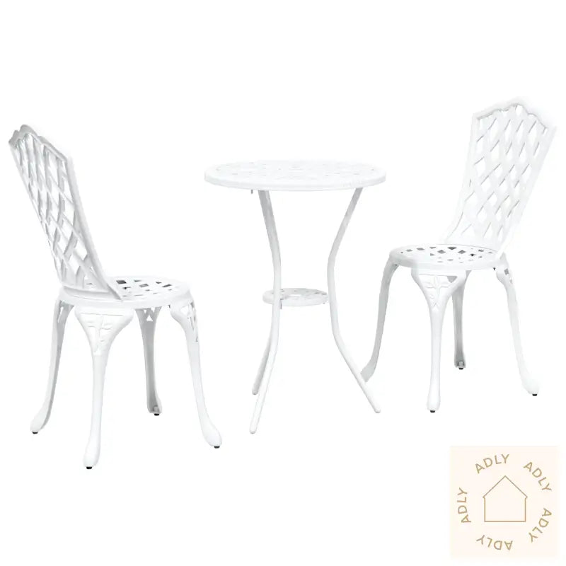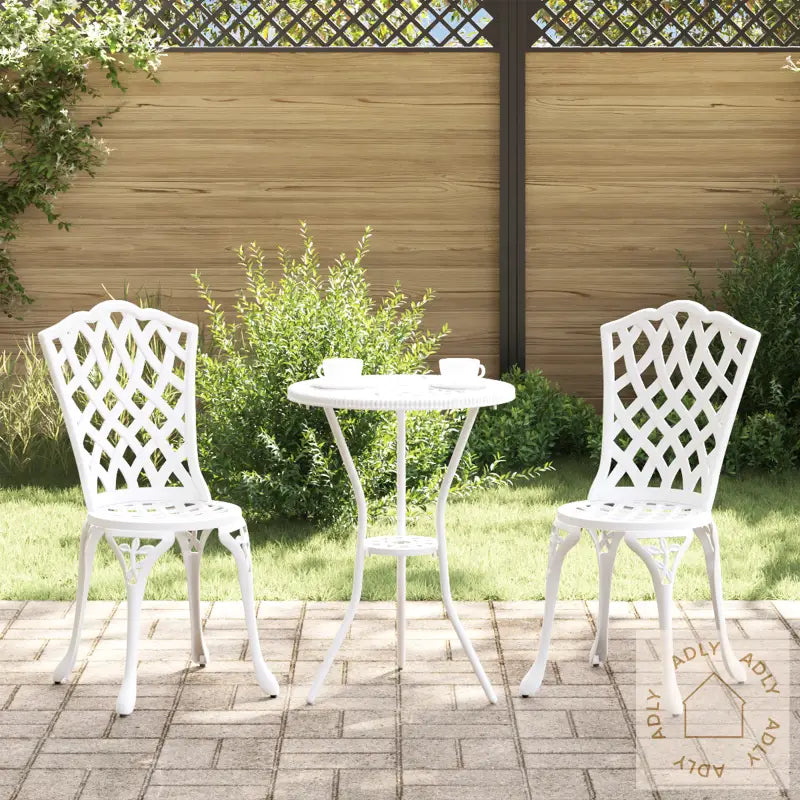 Den gjennomførte designen gjør at dette settet blir et naturlig blikkfang – ideelt for små sosiale sammenkomster eller stille stunder utendørs.Laget i robust aluminium, noe som garanterer både lang levetid og pålitelig styrke. Dette er møbler du kan ha glede av år etter år, uansett værforhold.Stolene har en behagelig utforming som sikrer god støtte og høy sittekomfort – perfekt når du vil roe ned eller nyte et hyggelig måltid utendørs.Materialvalg og finish gjør rengjøringen superlett, så du kan bruke mindre tid på vedlikehold og mer på å nyte livet ute.Settet leveres komplett med et matchende bord og to stoler – du har alt du trenger for å gjøre uteplassen komplett, enten du har liten balkong eller større hage.Farge: HvitForm: RundMateriale: MetallOverflate: MattInnendørs/Utendørs: Kun utendørsInkludert trekk: NeiRom: Hagen og TerrasseBatterier inkludert: NeiHodegavl inkludert: NeiKapasitet: 2 seterMaksimalt antall personer: 2Benhøyde: 45 cmSittekapasitet: 2Gynge: NeiStige: NeiMerke:Leveransen inneholder: 1 bord, 2 stolerMontering kreves: JaAnbefalt antall personer for montering: 2Enten du ser etter supre hagemøbler eller oppgraderer møbler til hjemmet, er denne spisegruppen både praktisk og elegant. Den passer inn overalt, sammen med alt fra bokhyller og stående hyller til andre favorittmøbler. Gi uterommet ditt nytt liv med kvalitetsmøbler som kombinerer stil og brukervennlighet – for de beste utendørsopplevelsene.