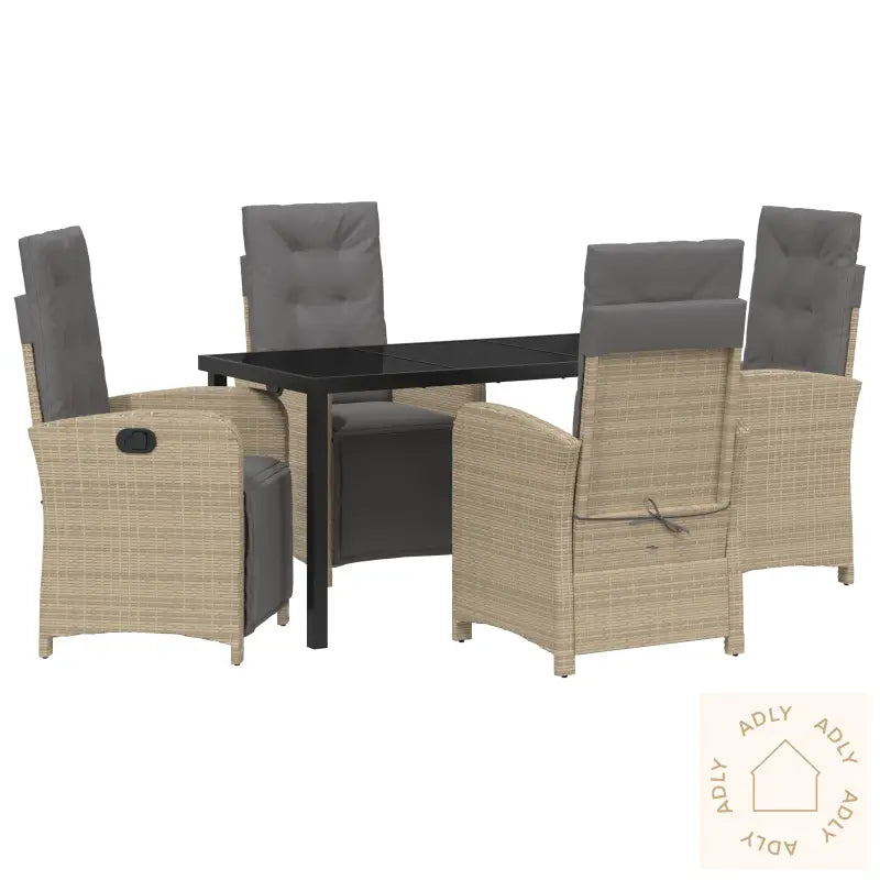 vidaXL 5 Delers Hagemøbelsett med Puter byr på en flott kombinasjon av moderne hagemøbler og praktisk bruk, perfekt for alt fra familiesamlinger til avslappende ettermiddager på terrassen. Settet gir en umiddelbar stiloppgradering ute, enten du har en balkong eller stor veranda. Det komfortable designet gjør det enkelt å sitte sammen opptil fire personer for hyggelige måltider eller avslapping i frisk luft.