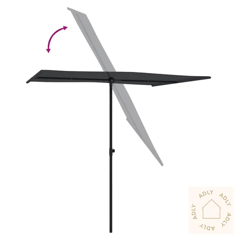 Farge: svartMaterialer: stoff (100% polyester), aluminiumSamlet mål: 200 x 150 x (105-215) cm (L x B x H)Diameter bunnstolpe: 22 mmDiameter midtre stolpe: 22 mmDiameter øvre sidestolpe: 22 mmHøydejusterbar180-graders rotasjonMontering kreves: ja