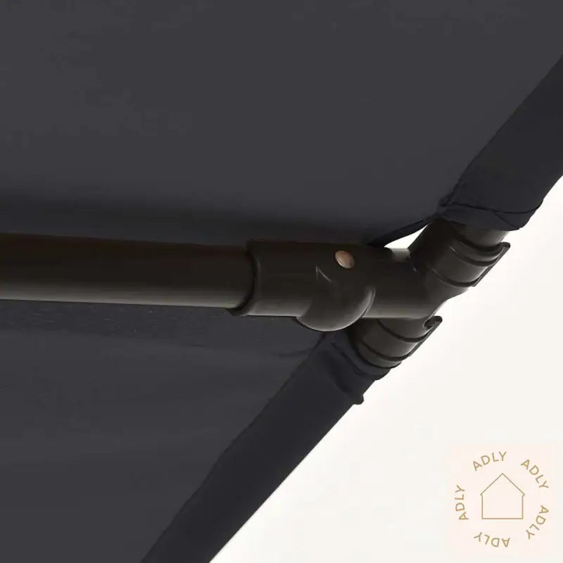 Parasolltrekket består av slitesterkt polyester som både beskytter godt mot UV-stråler og tåler mye sol uten å falme. Stoffet er enkelt å holde rent og trenger lite vedlikehold, noe som gir deg mer tid til å slappe av ute. Parasollen har solide aluminiumsstolper, som gir stabilitet og god holdbarhet, så du kan føle deg trygg selv når det blåser litt.