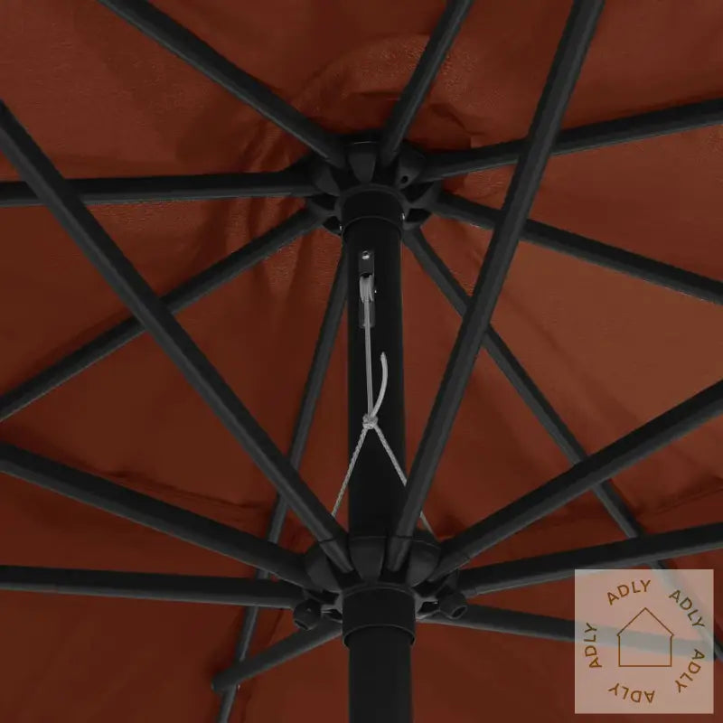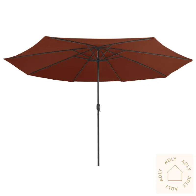 Parasollskjermen er laget av slitesterk, anti-falmende polyester som både tåler sollys og enkelt kan rengjøres. Den kraftige metallstangen gir optimal stabilitet, og de 8 solide spilene sikrer ekstra holdbarhet selv når vinden blåser litt. Du får enkel betjening med den praktiske sveivemekanismen, så parasollen er rask å åpne og lukke etter behov. Hele konstruksjonen er designet for å være både robust og lett å montere, så du kommer fort i gang med å nyte sommeren.