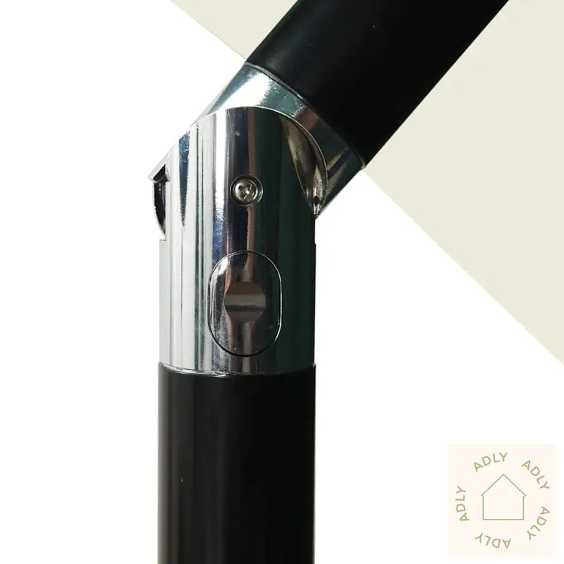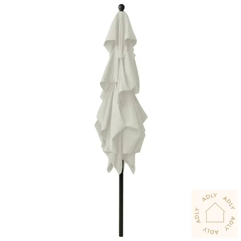 Parasollen er laget av slitesterk polyester som både tåler sol og holder fargen over tid, samtidig som materialet har UV-beskyttelse slik at både du og dine møbler får lengre levetid. Den robuste stangen og de åtte aluminiums-spilene gir ekstra stabilitet, selv når det blåser litt. Med praktisk vippemekanisme er det enkelt å justere etter solens posisjon, og designet gjør at parasollen er både sammenleggbar og lett å flytte på. Den passer til eksisterende parasollføtter eller kan plasseres midt på bordet – ideelt hvis bordet har en åpning i midten.