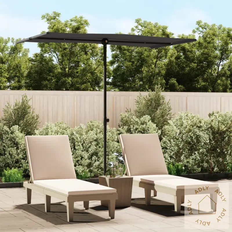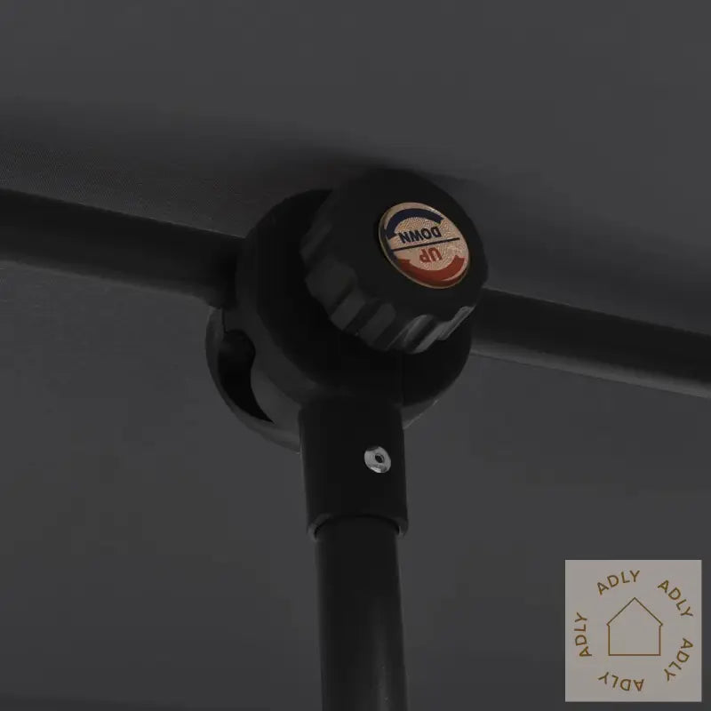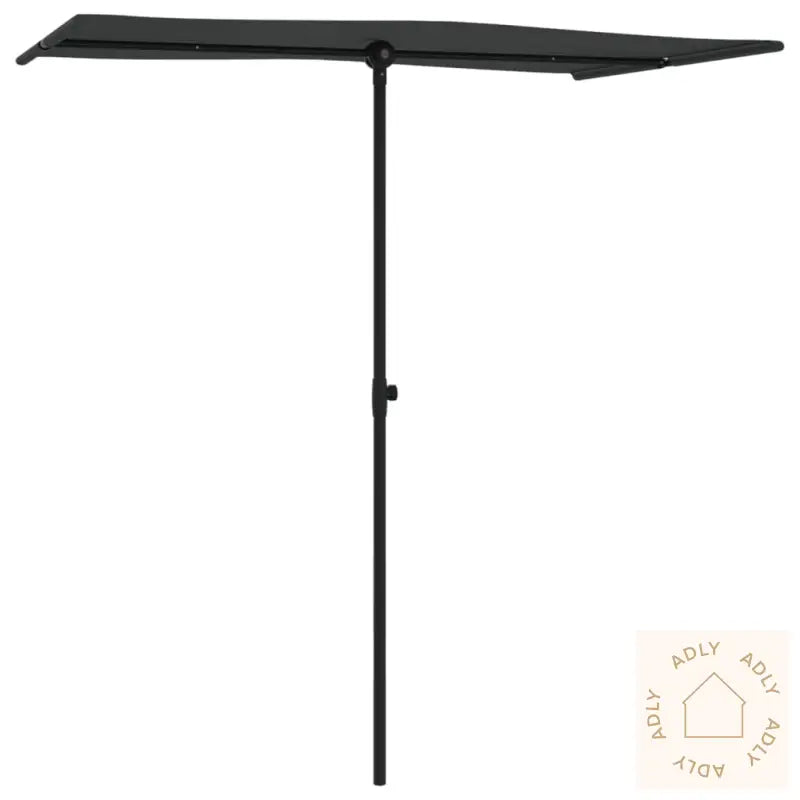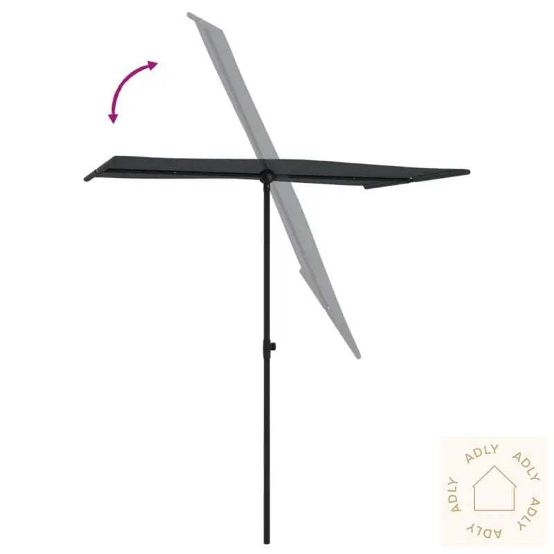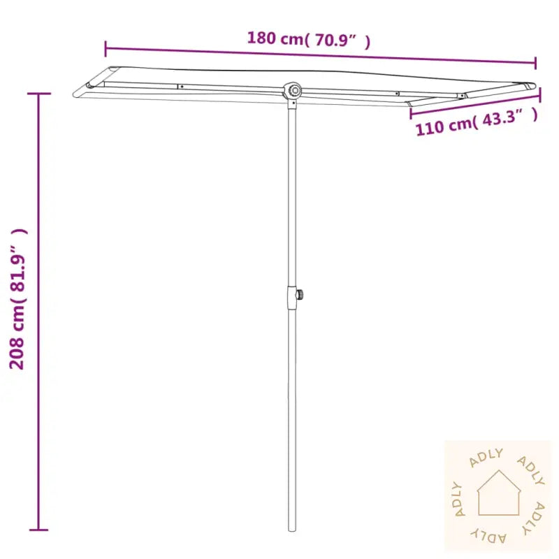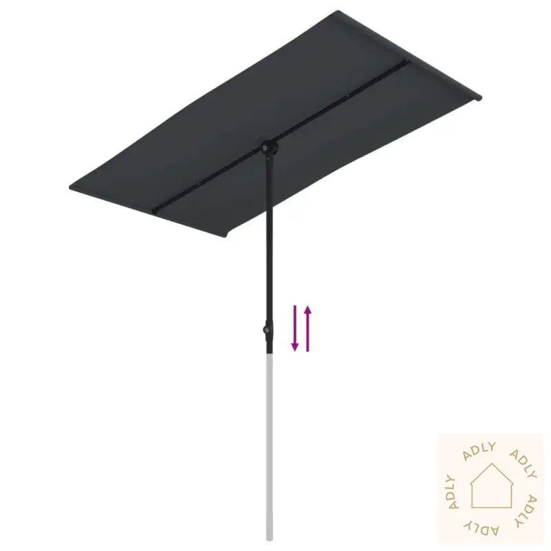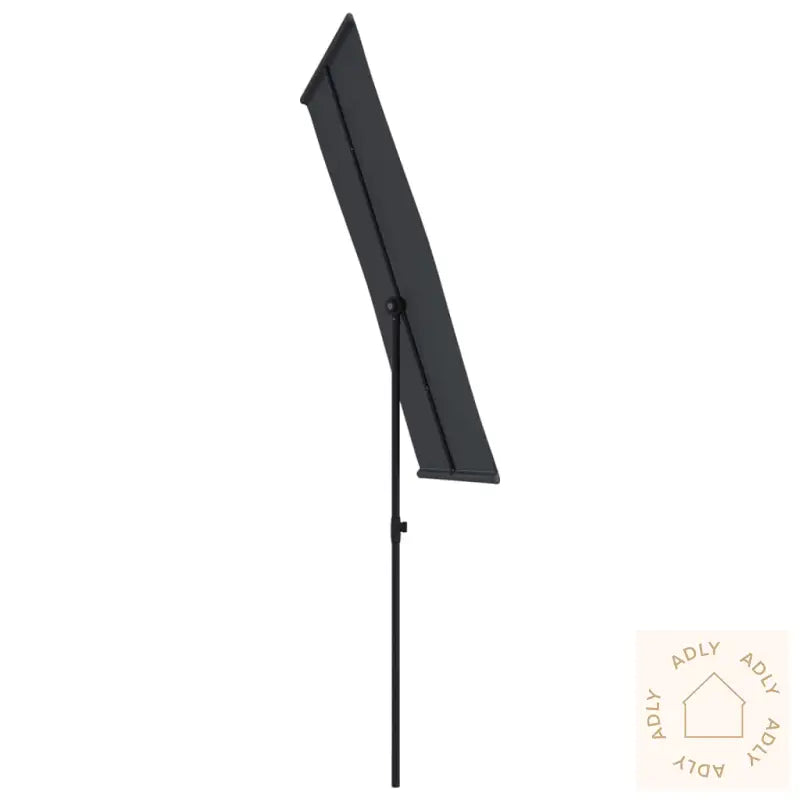 Farge: svartMaterialer: slitesterk polyester (100% polyester), aluminiumSamlet mål: 180 x 110 x 208 cm (L x B x H)Diameter bunnstolpe: 22 mmDiameter midtre stolpe: 22 mmDiameter øvre sidestolpe: 22 mmHøydejusterbar for ekstra brukervennlighetRoterbar 180 grader for fleksibel solbeskyttelseMontering kreves
