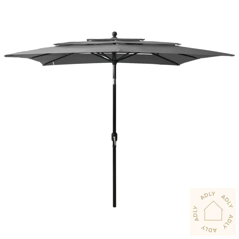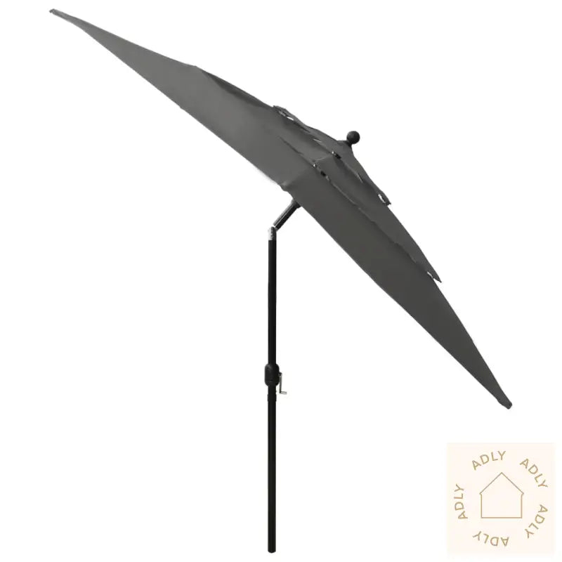 Denne hageparasollen med 3 nivåer er et smart valg for deg som vil ha en funksjonell og stilig løsning for å beskytte deg mot både sterke UV-stråler og regn på terrassen, uteplassen eller i hagen. Den har solide materialer og design som passer perfekt sammen med både hagemøbler og andre møbler til hjemmet, slik at du får mer ut av uteområdet ditt.