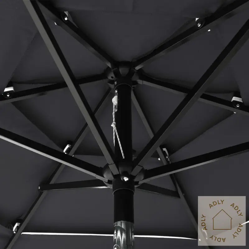 Farge: antrasittMaterialer: polyester, pulverlakkert aluminiumSamlet mål: 200 x 228 cm (Diameter x H)Diameter stang: 38 mmInkluderer 6 aluminiumsspiler