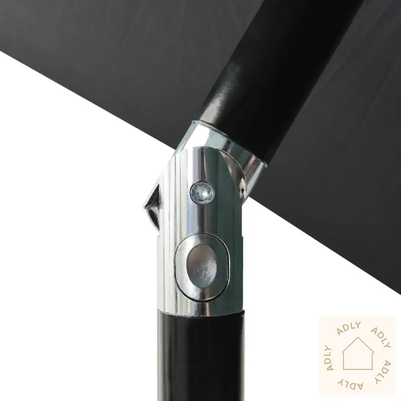 Paraplyen er laget av slitesterkt polyester som beskytter mot sol og som holder seg pen, siden stoffet også er laget for å unngå falming. Med en pulverlakkert aluminiumsstang og spiler får du god stabilitet, så du kan stole på at parasollen står stødig selv når vinden tar litt. Takket være vippemekanismen kan du enkelt justere skjermingen etter hvor sola står, og den er superenkel å slå sammen og ta med seg. Denne parasollen kan samtidig kombineres med både eksisterende parasollfot eller plasseres midt gjennom hagebordet ditt hvis det har hull, og matcher flere typer utendørsmøbler og hagemøbler.